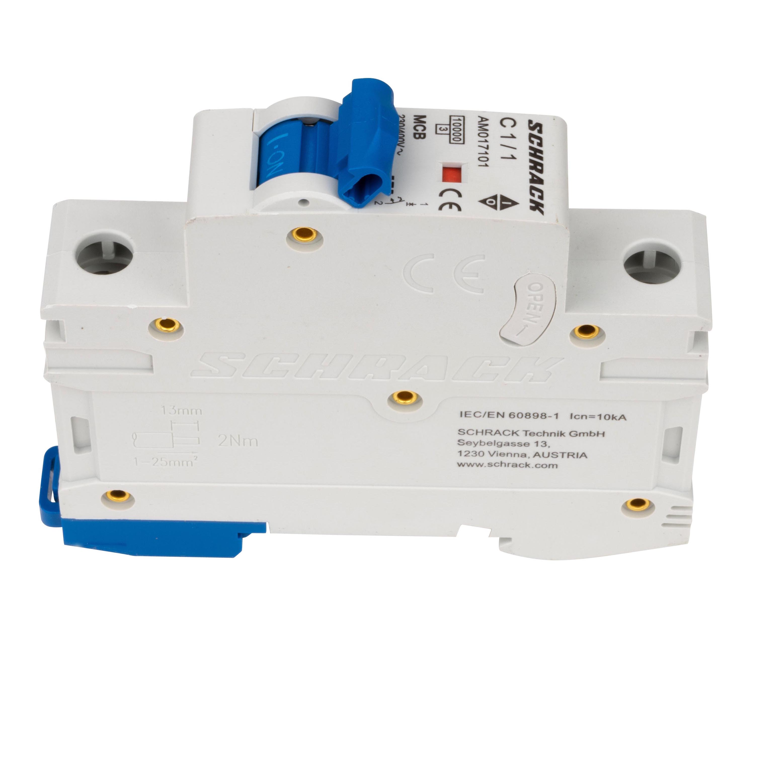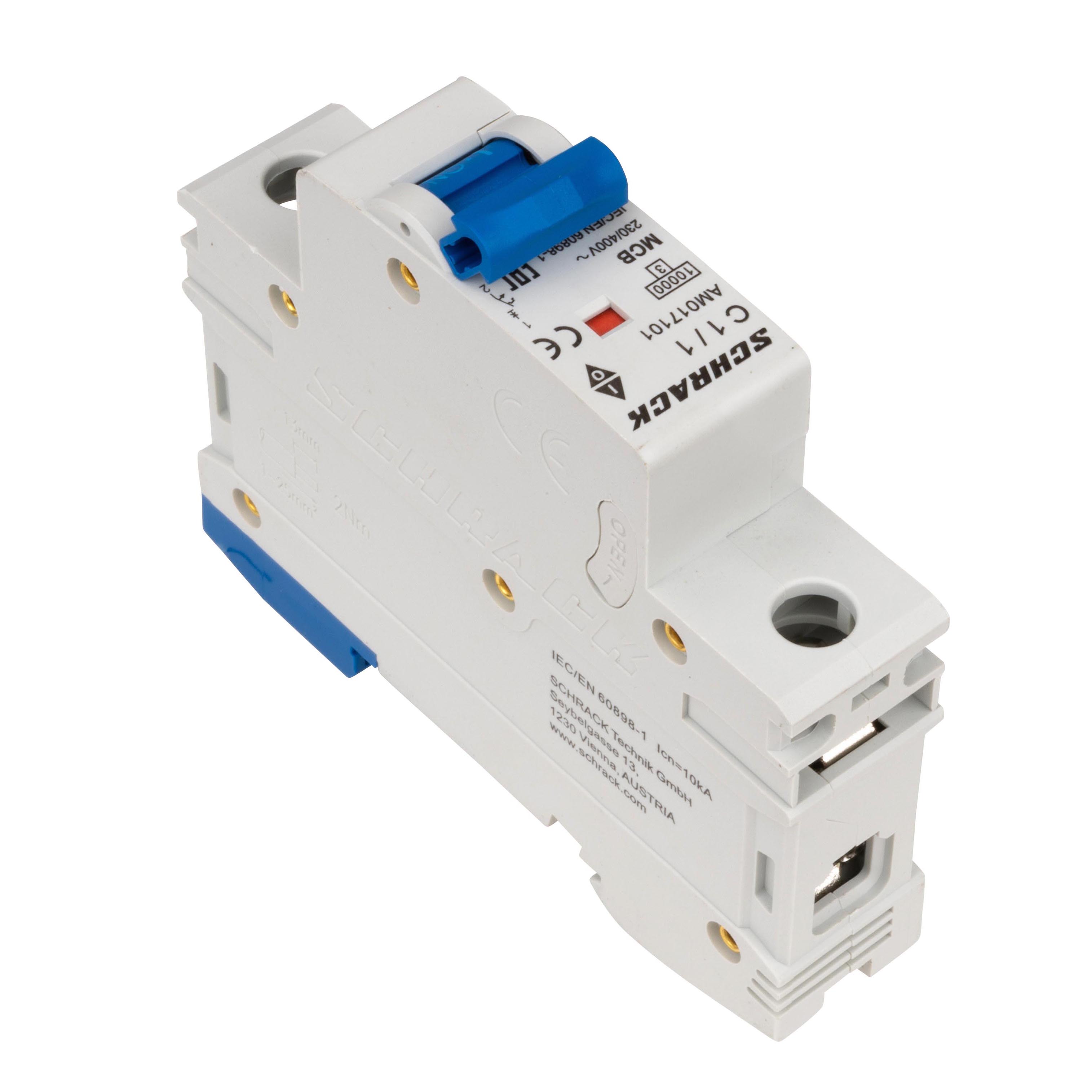 Single-pole Automatic Circuit Breaker C1A/1, 10kA from Schrack's AMPARO series.