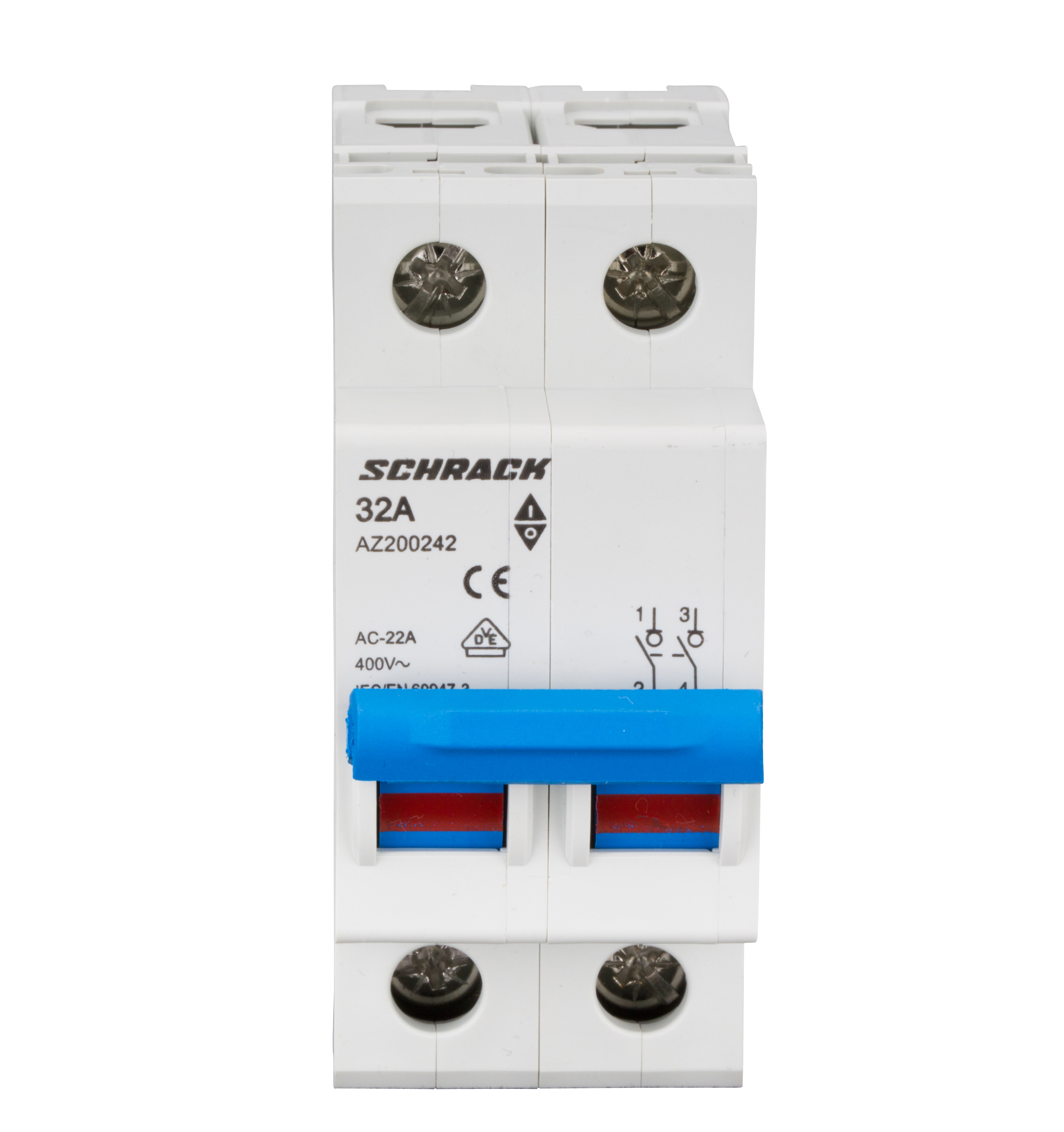 Load disconnector switch designed for commutation and protection of electrical circuits in industrial and distribution systems. The device provides reliable load disconnection at a rated current of 32 A with two-pole configuration.