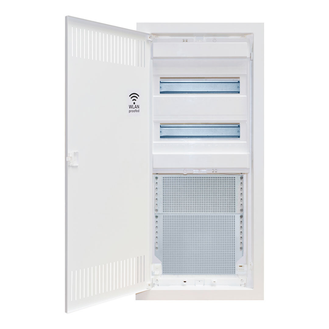 Recessed combined distribution board, 24+4 modules+2 IT mounting panels, metal door