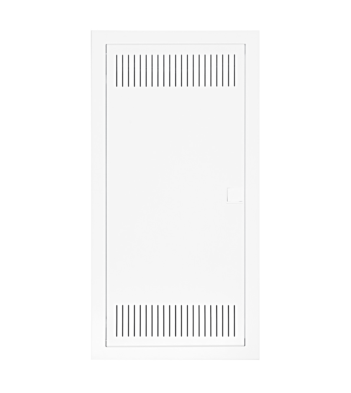 Recessed combined distribution board with metal door for concealed installation. Designed for organization and distribution of electrical circuits in residential and industrial premises.