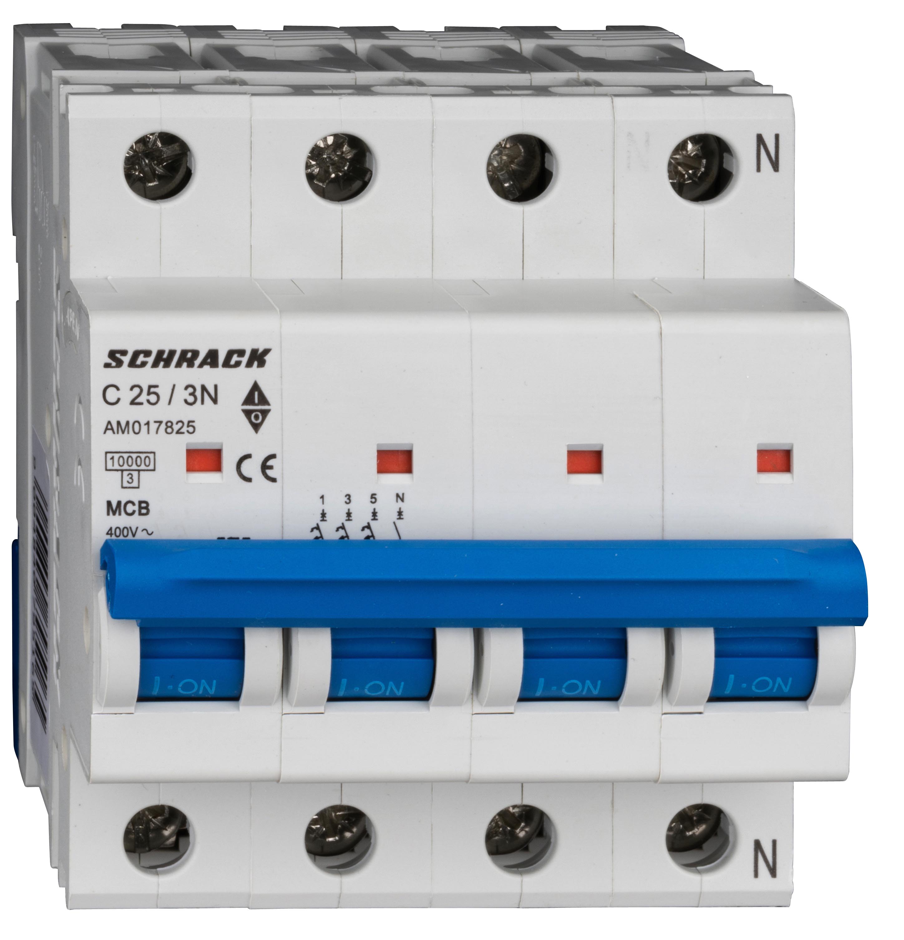 AMPARO сериясының AM10 түрінің үш полюсты автоматты ажыратқышы нейтральды контактімен (3+N). Тұрмыстық және өндірістік айналмалы ток желілерінде перегрузкалардан және қысқа тұйықталудан электр сызықтарын қорғау үшін арналған.