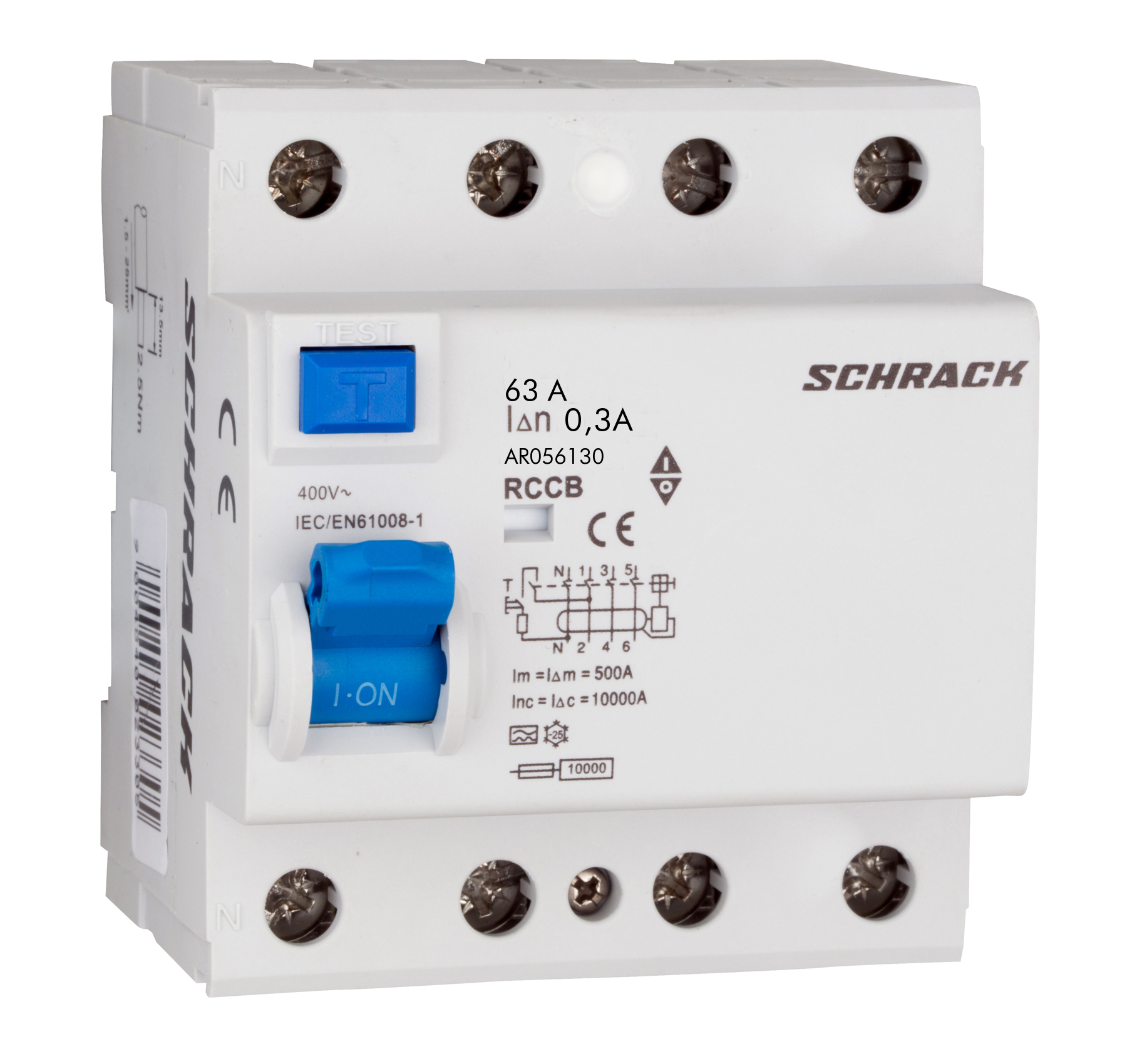 ҚҚҚ (қорғау құрылғысы қалыптасуы) Schrack AMPARO 63А/4, 10кА, 300мА, түрі А электрлі сызықтарды ағындықтың ағын және өткізгіш бөліктермен тікелей контактіден қорғау үшін арналған.