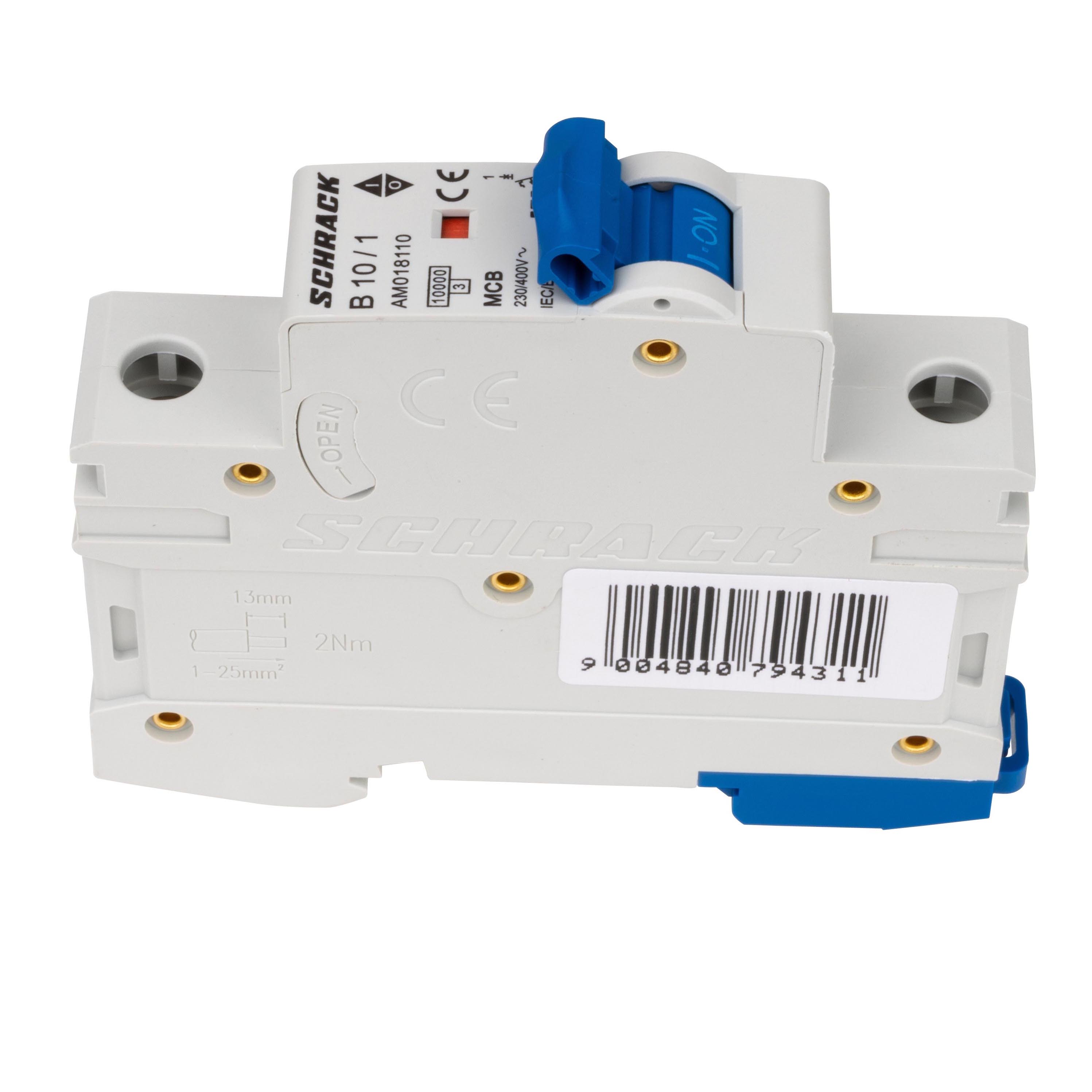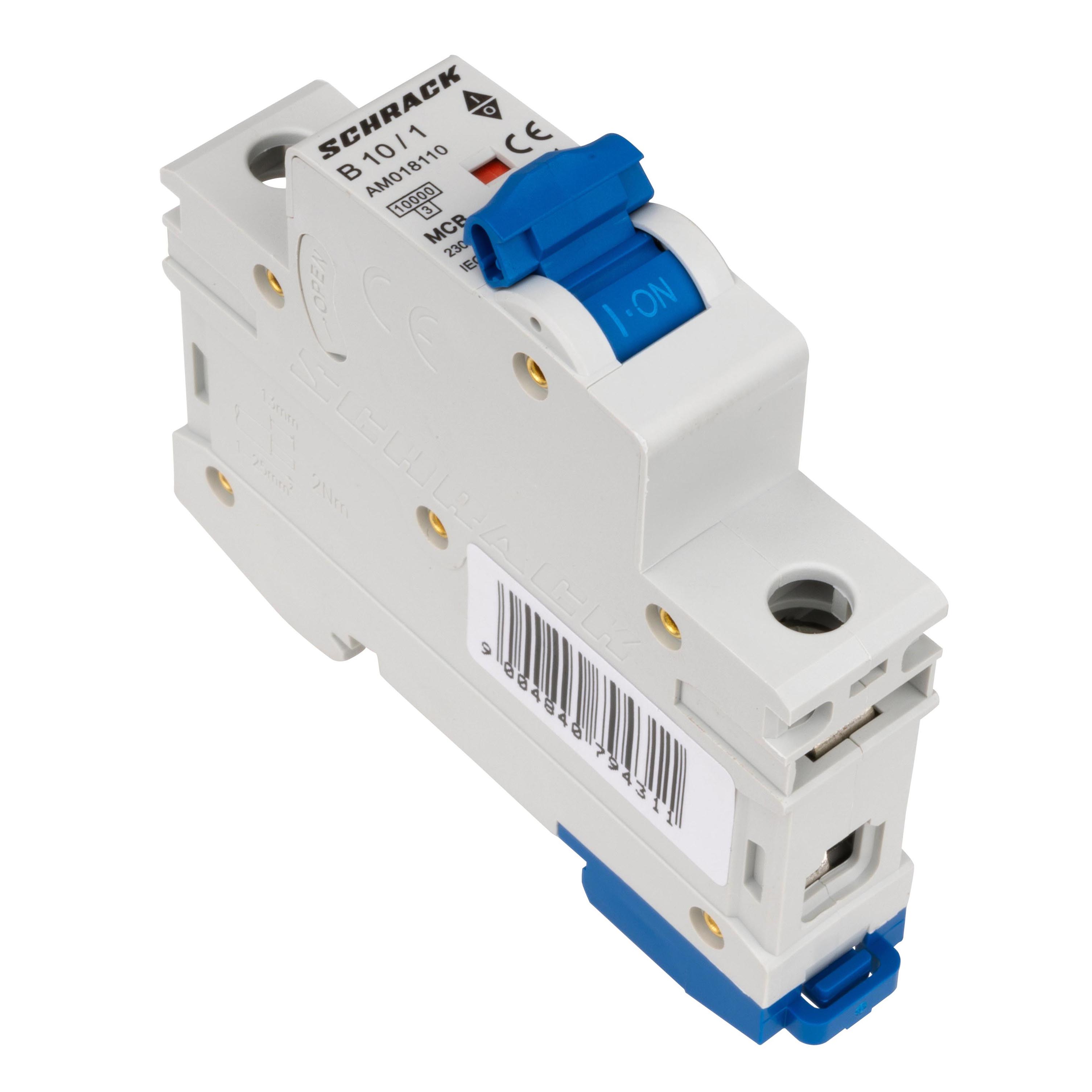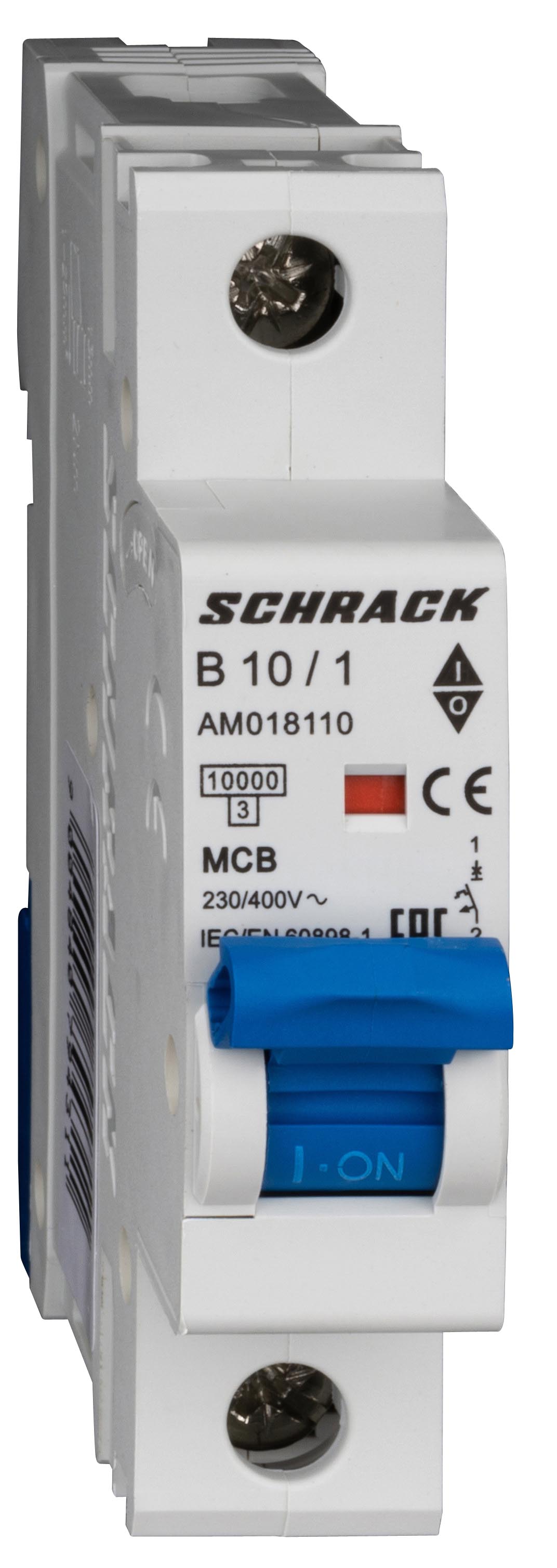 Однополюсный автоматический выключатель серии AMPARO с номинальным током 10 А и коммутирующей способностью 10 кА. Предназначен для защиты электрических цепей переменного тока от перегрузок и коротких замыканий.