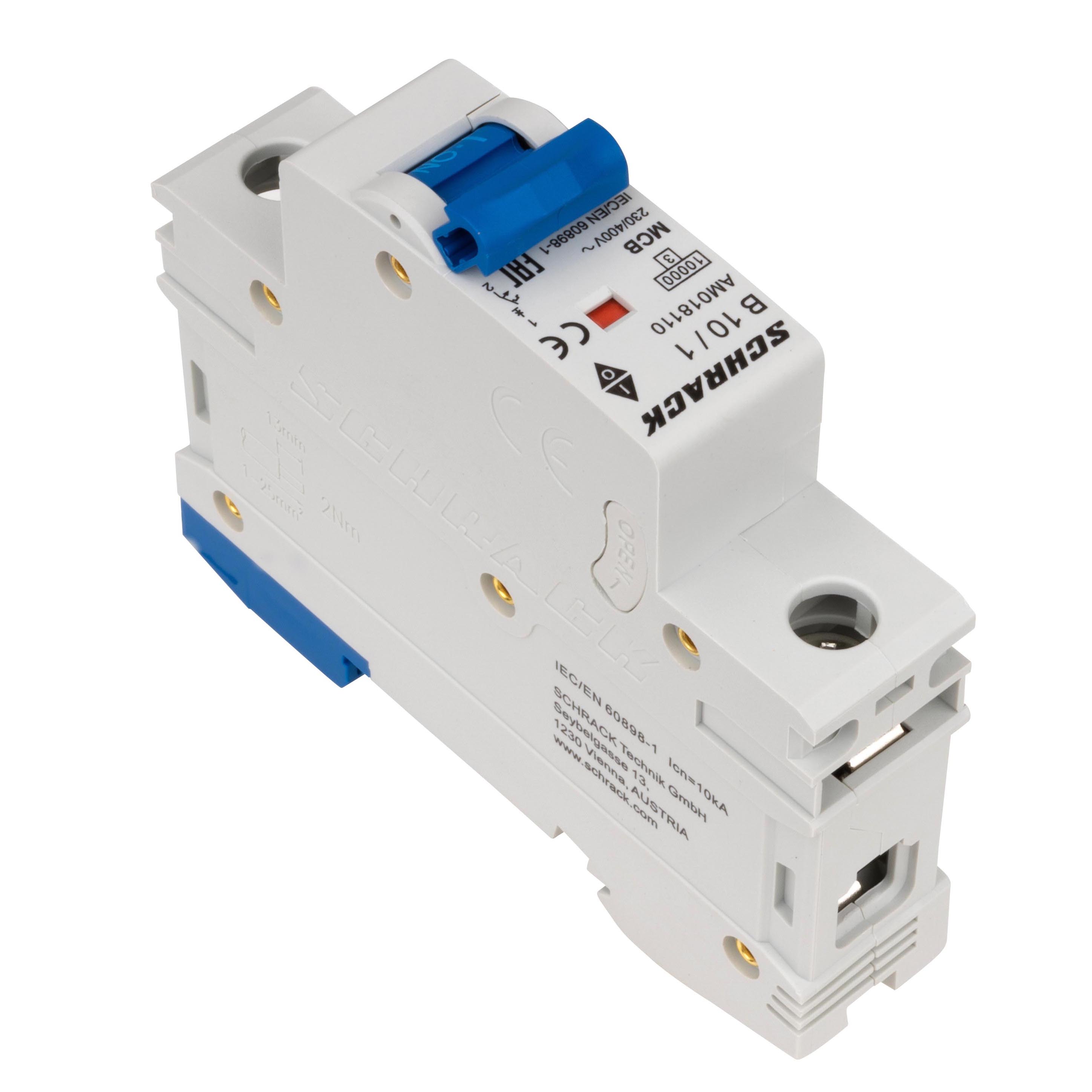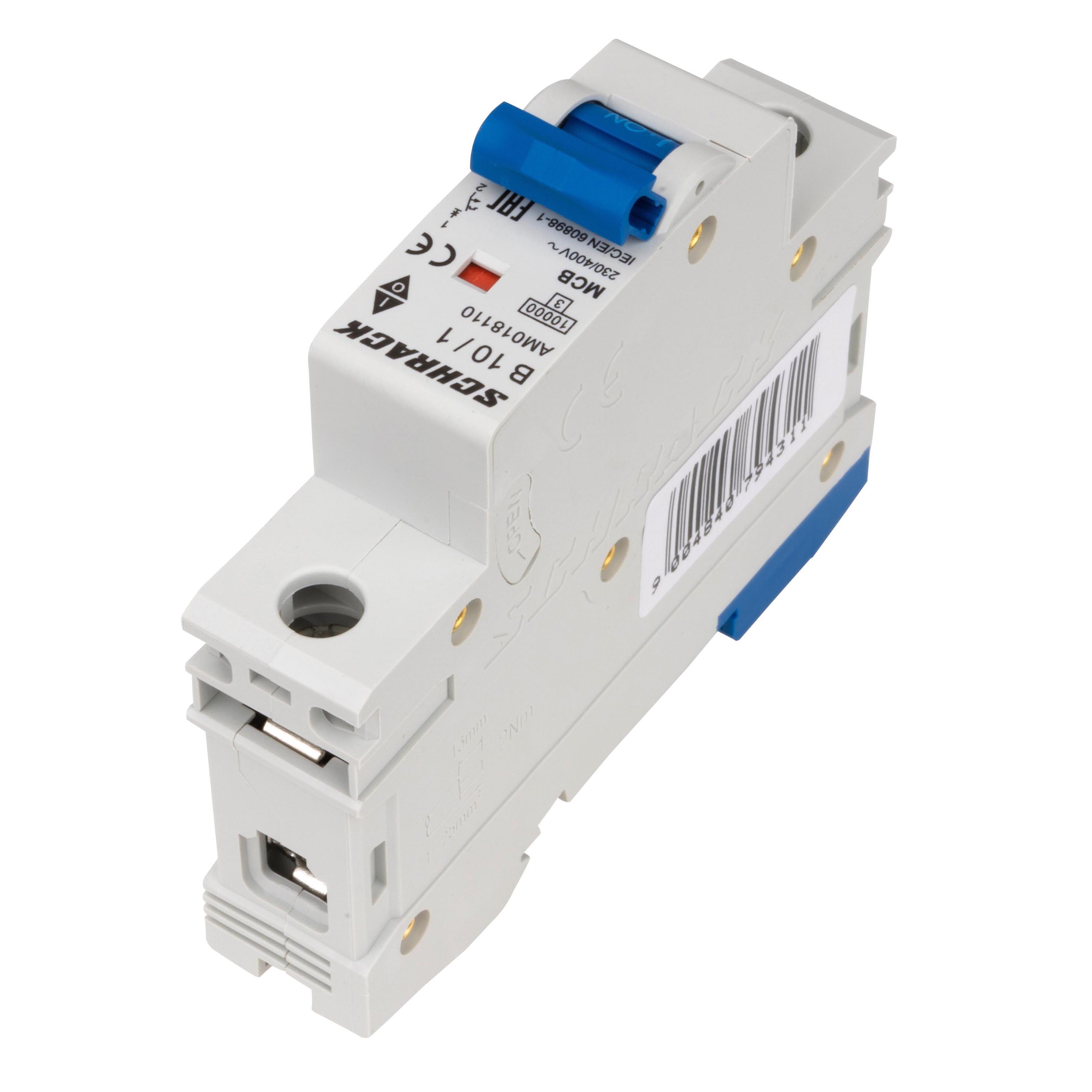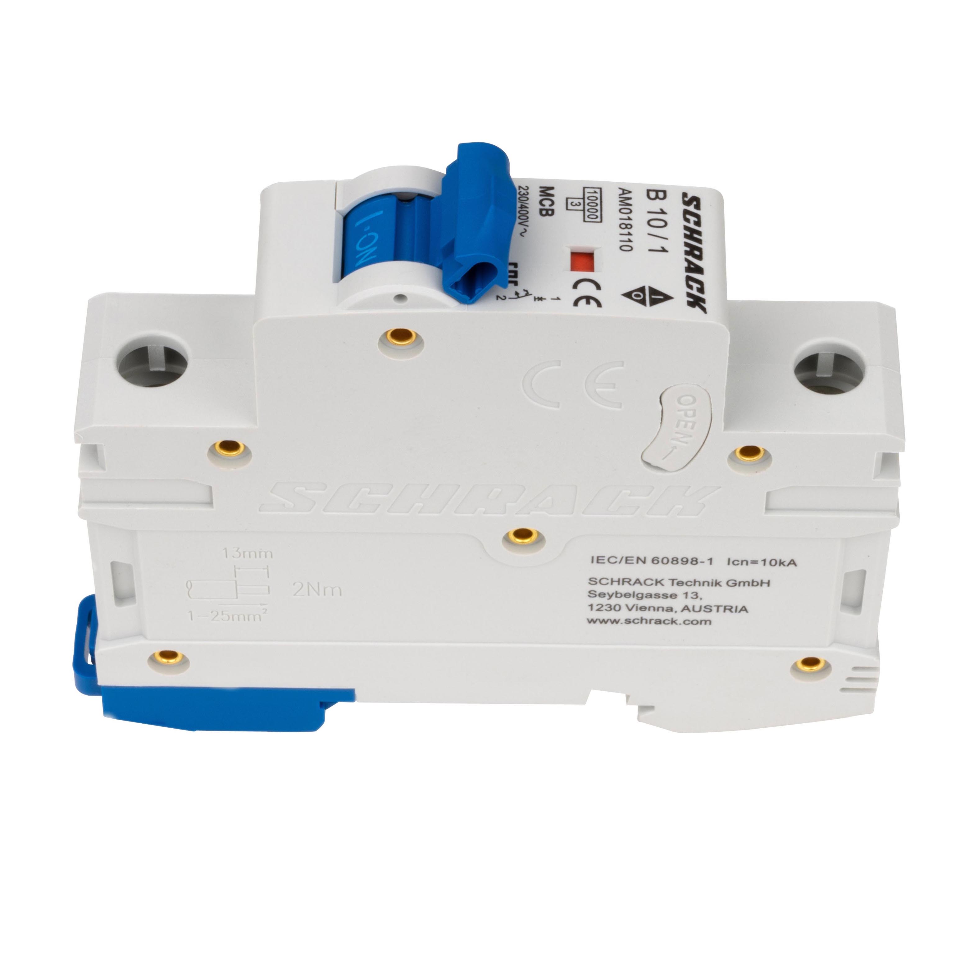 Однополюсный автоматический выключатель серии AMPARO с номинальным током 10 А и коммутирующей способностью 10 кА. Предназначен для защиты электрических цепей переменного тока от перегрузок и коротких замыканий.