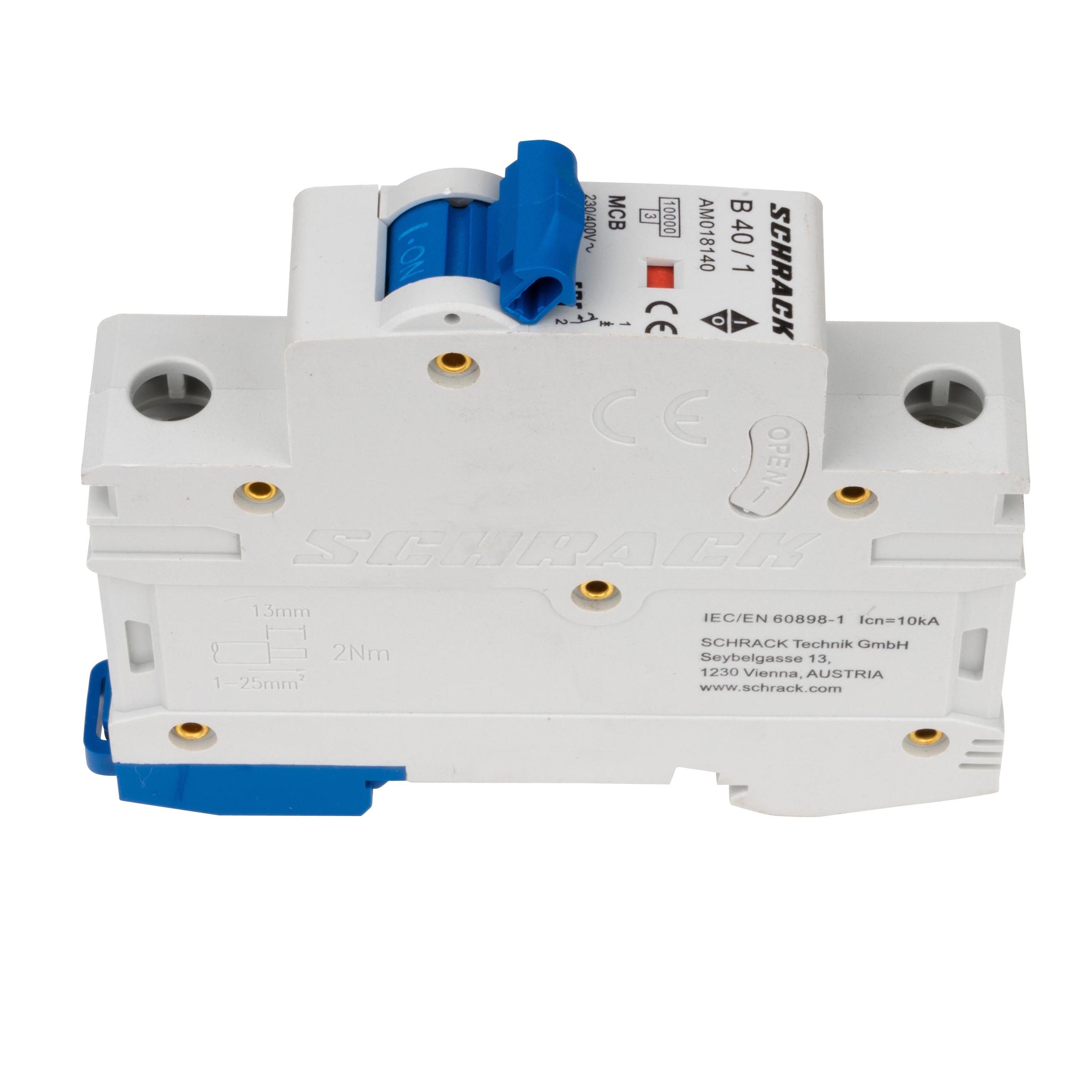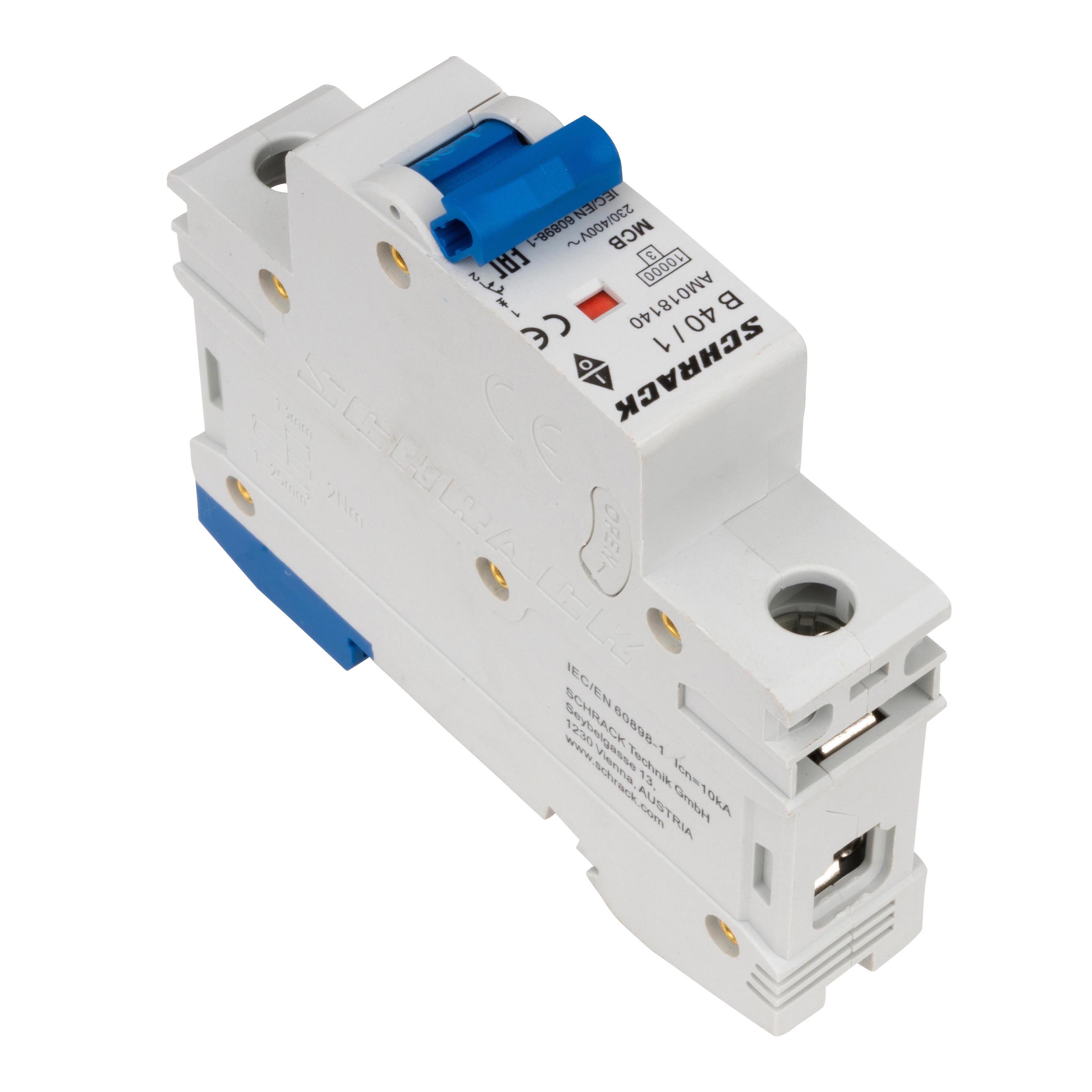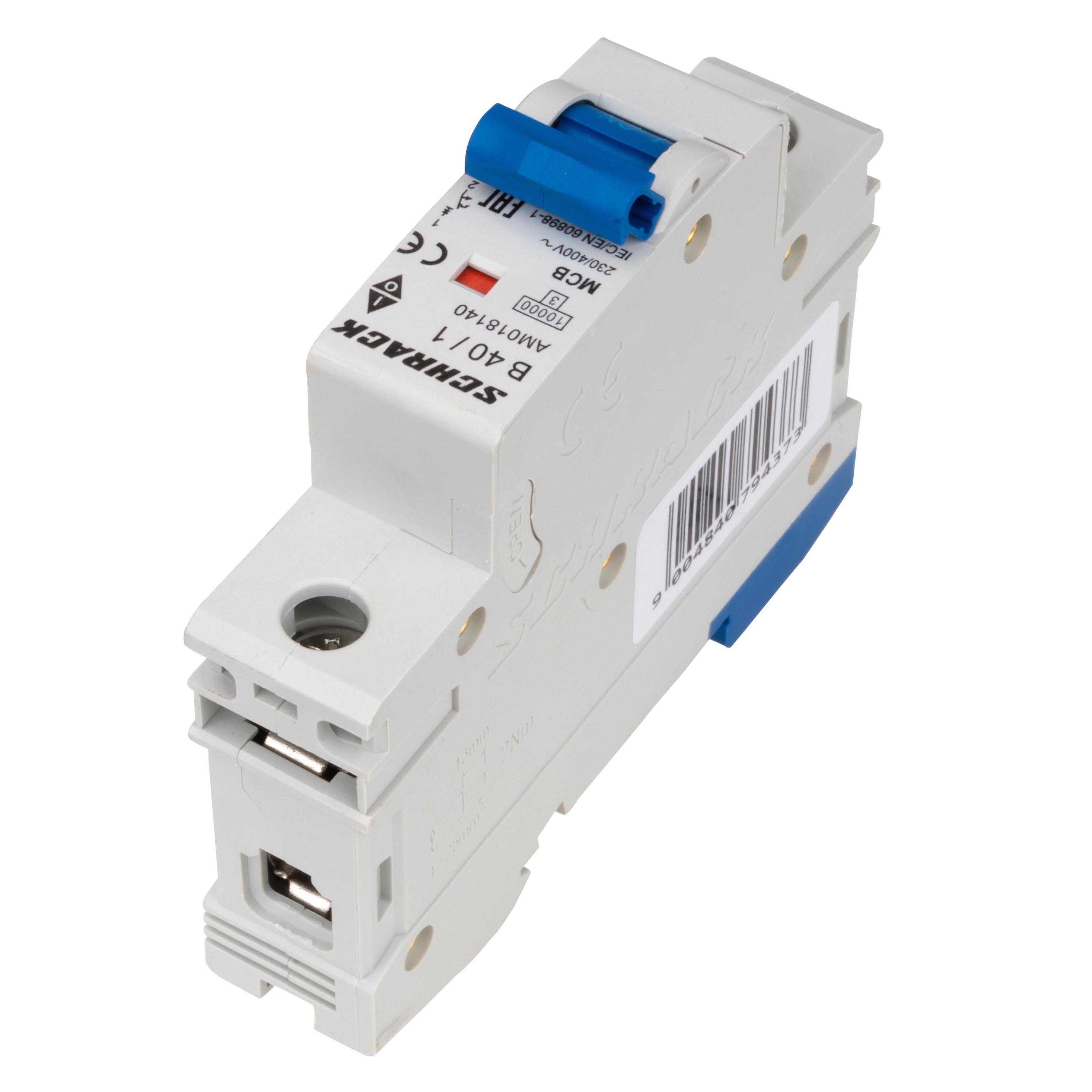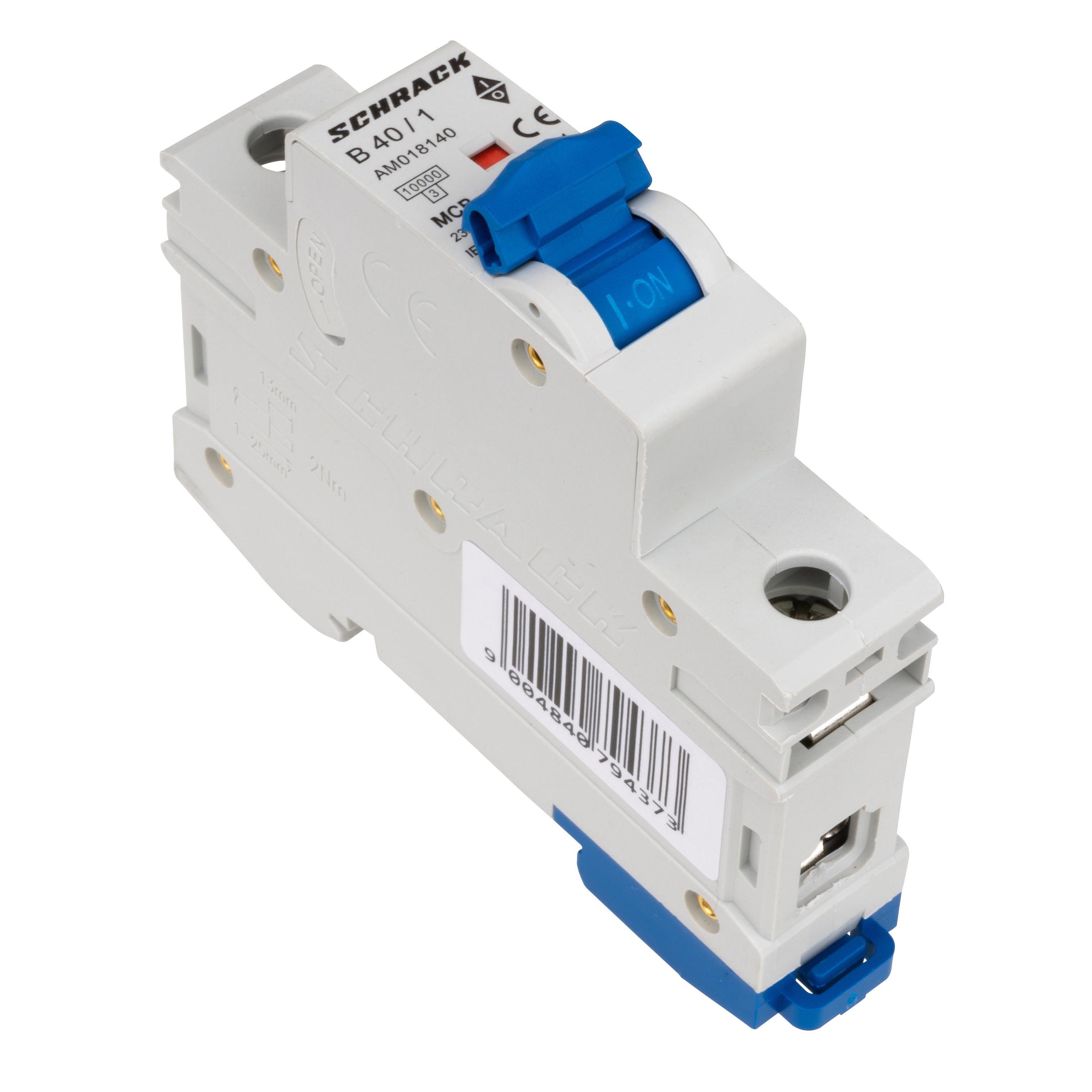 Однополюсный автоматический выключатель серии AMPARO с номинальным током 40А и коммутирующей способностью 10кА. Предназначен для защиты электрических цепей переменного тока от перегрузок и коротких замыканий.