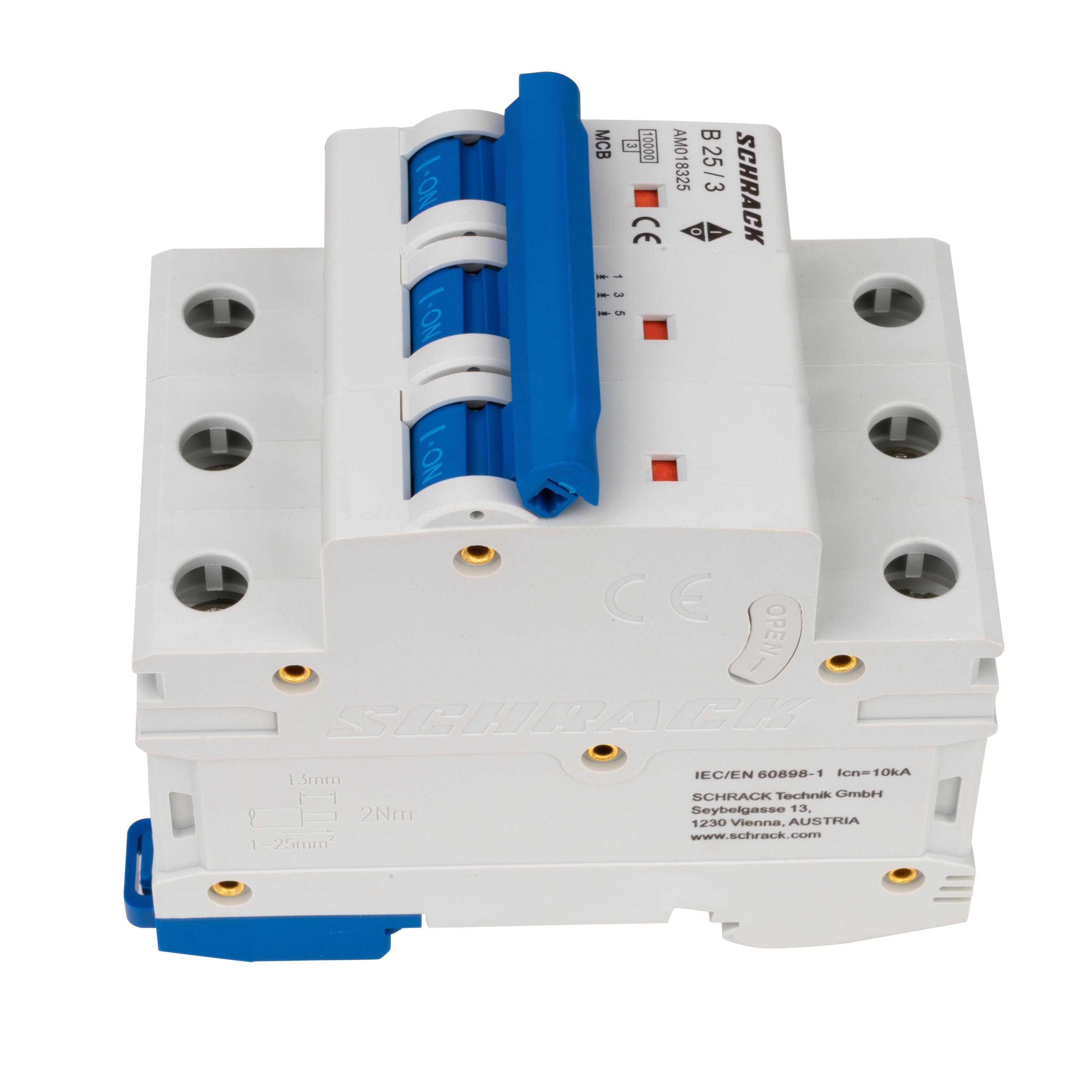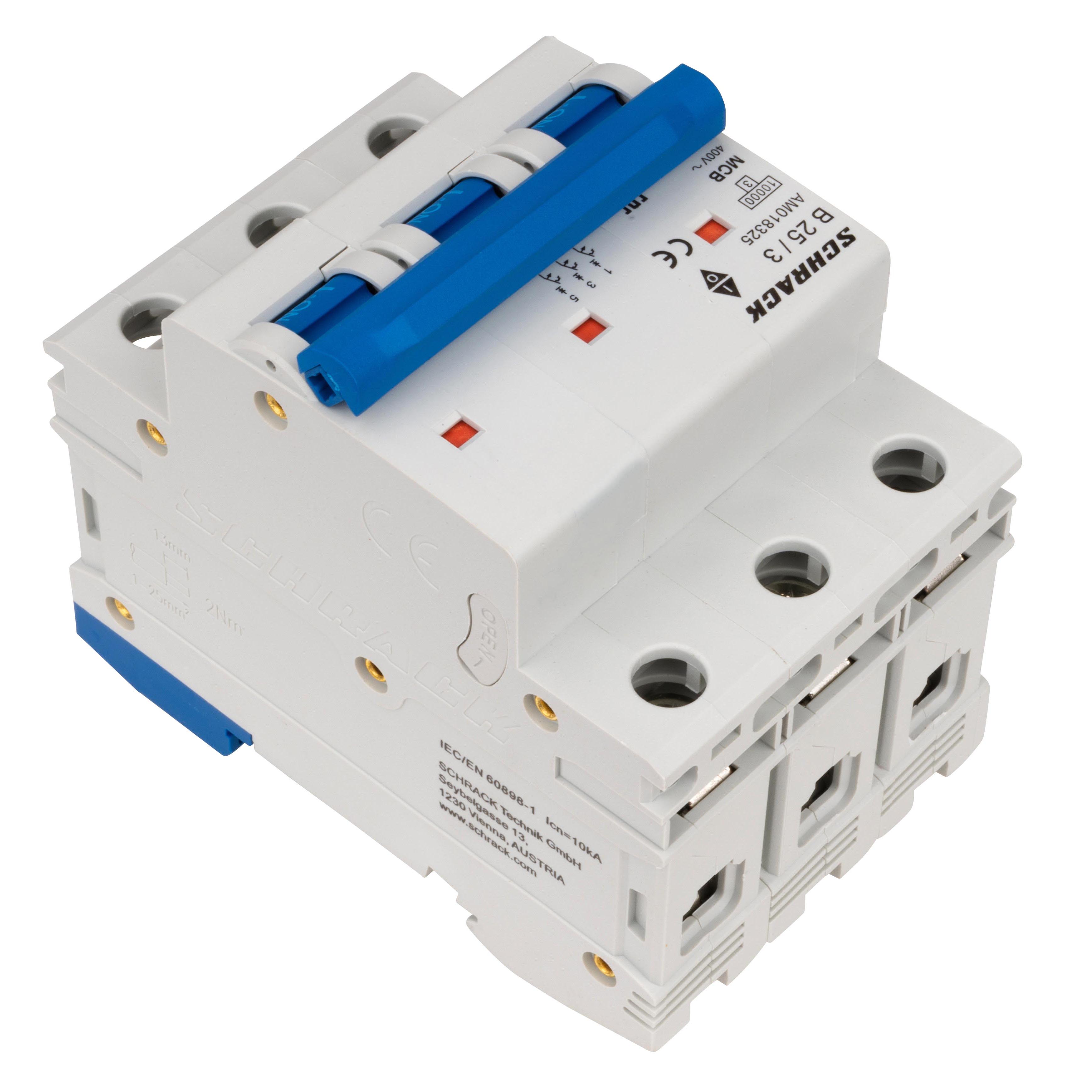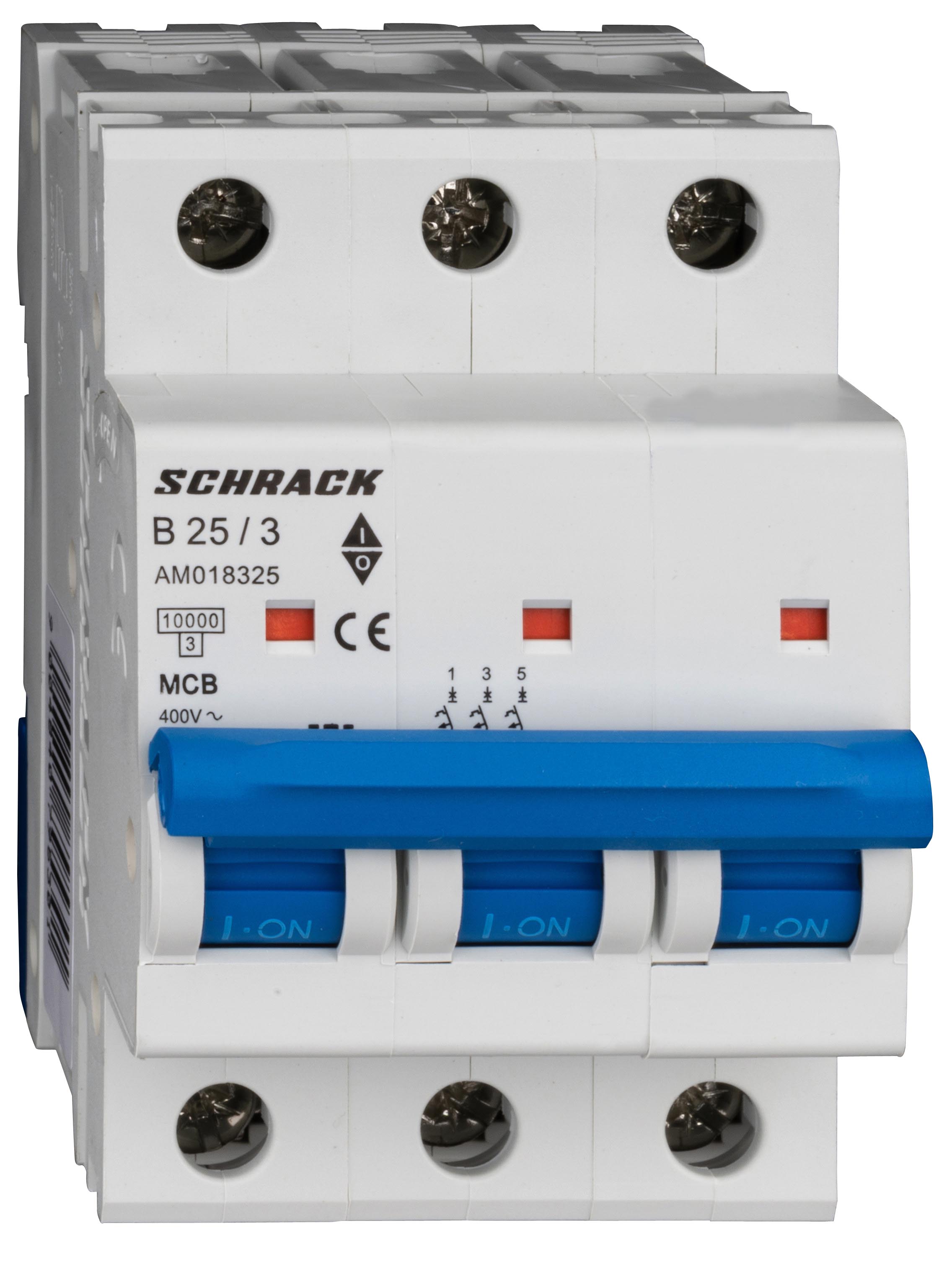 Трёхполюсный автоматический выключатель серии AMPARO производства Schrack предназначен для защиты электрических цепей переменного тока от сверхтоков и коротких замыканий.