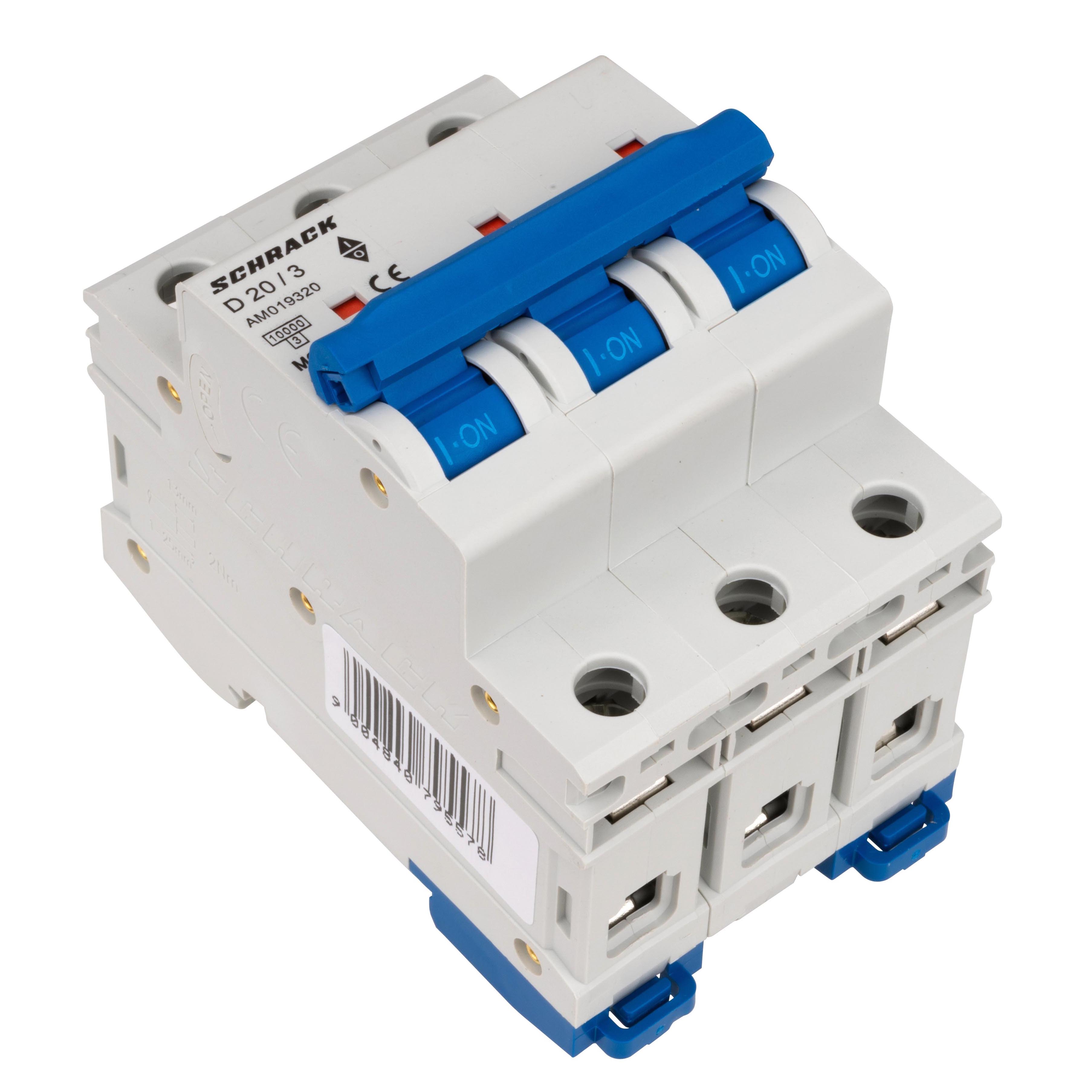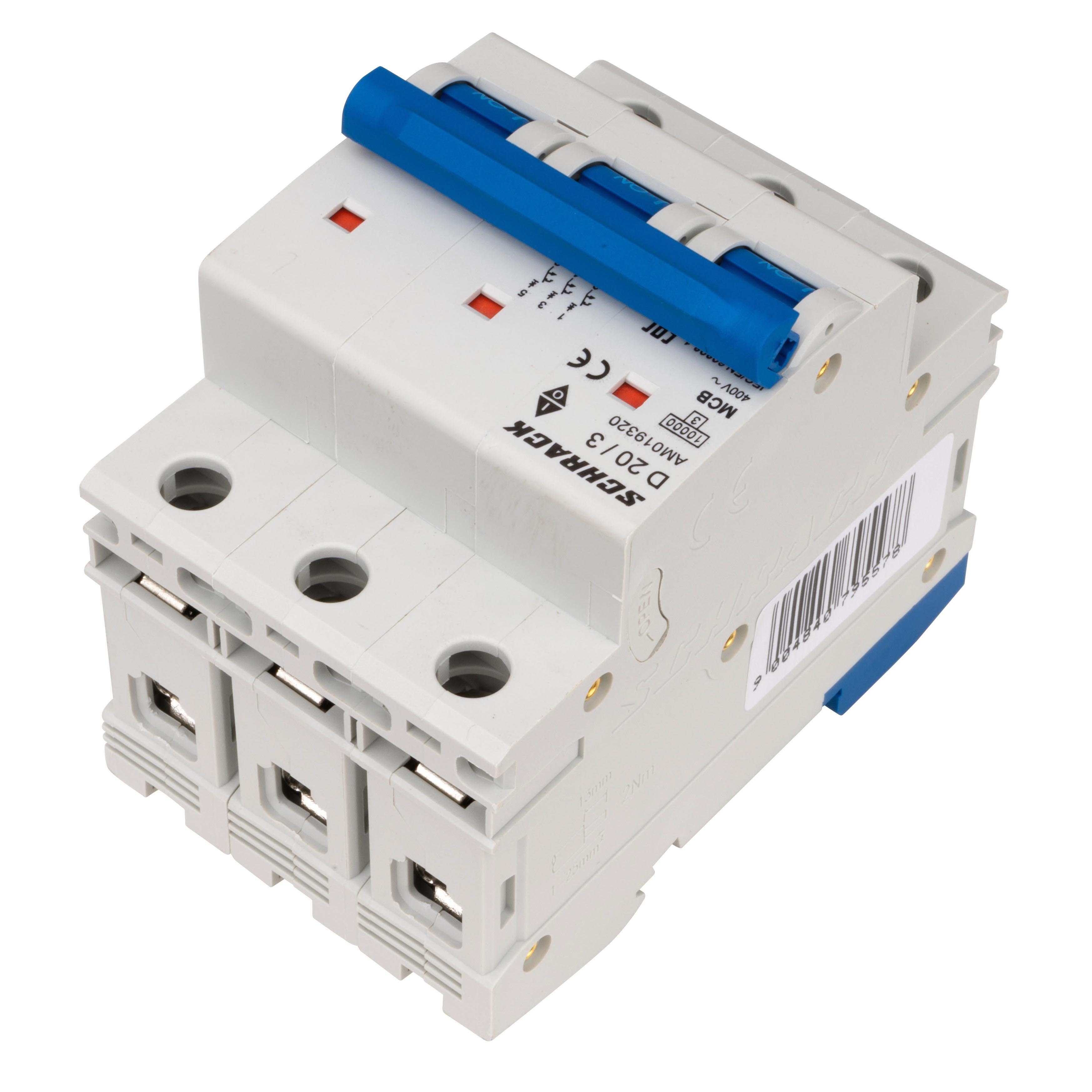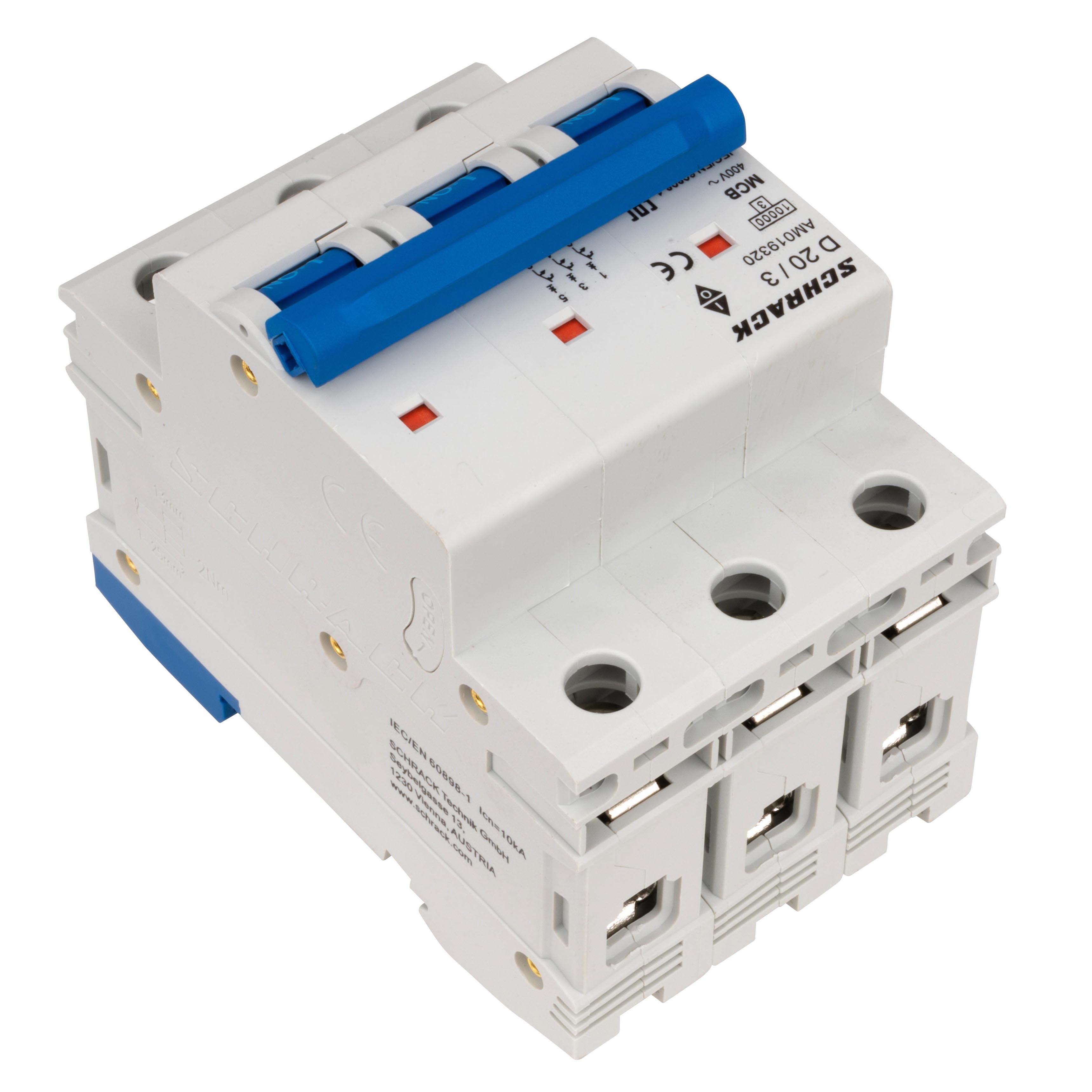 Автоматический выключатель трёхполюсный D20А/3, 10кА предназначен для защиты электрических цепей от перегрузок и коротких замыканий в сетях переменного тока.