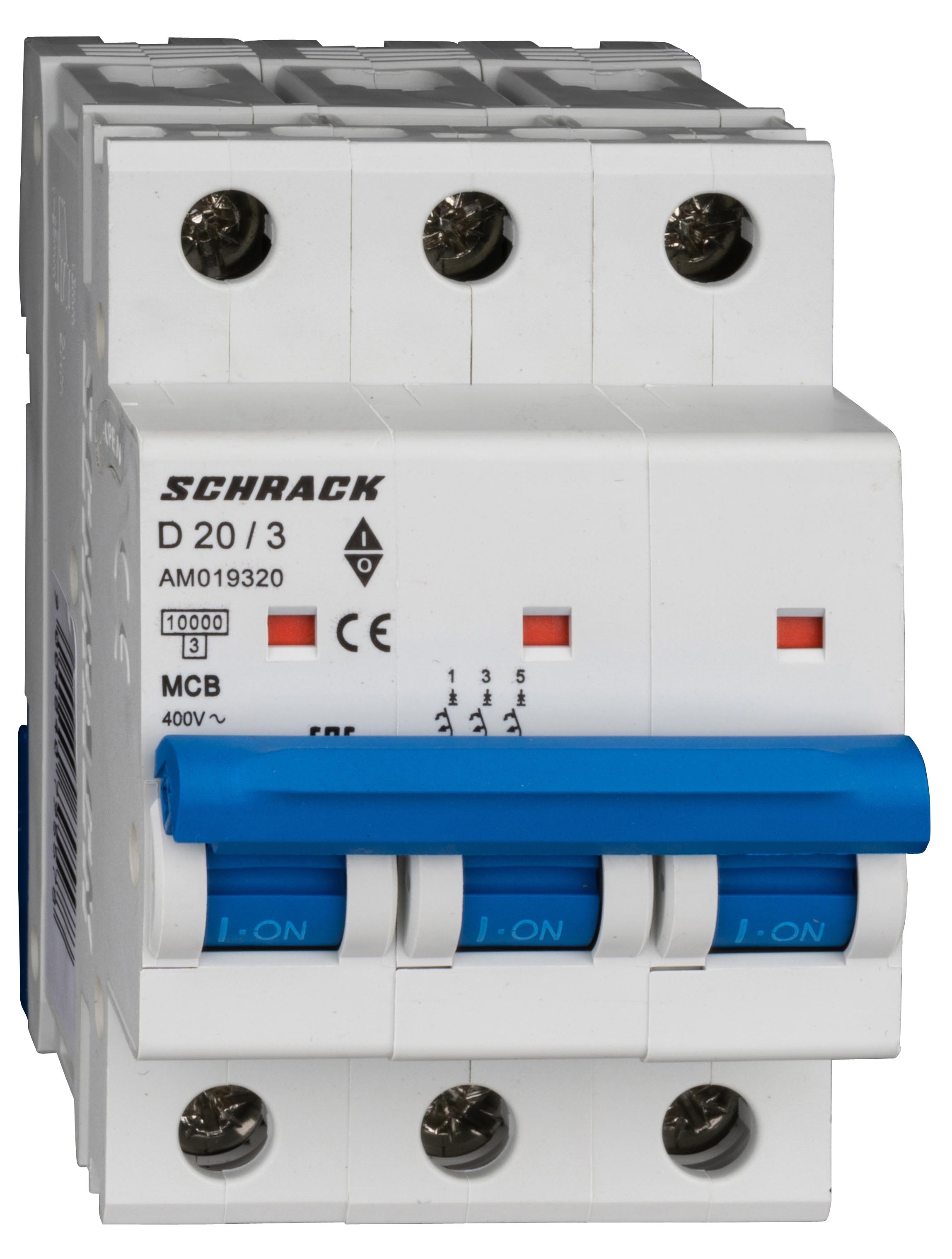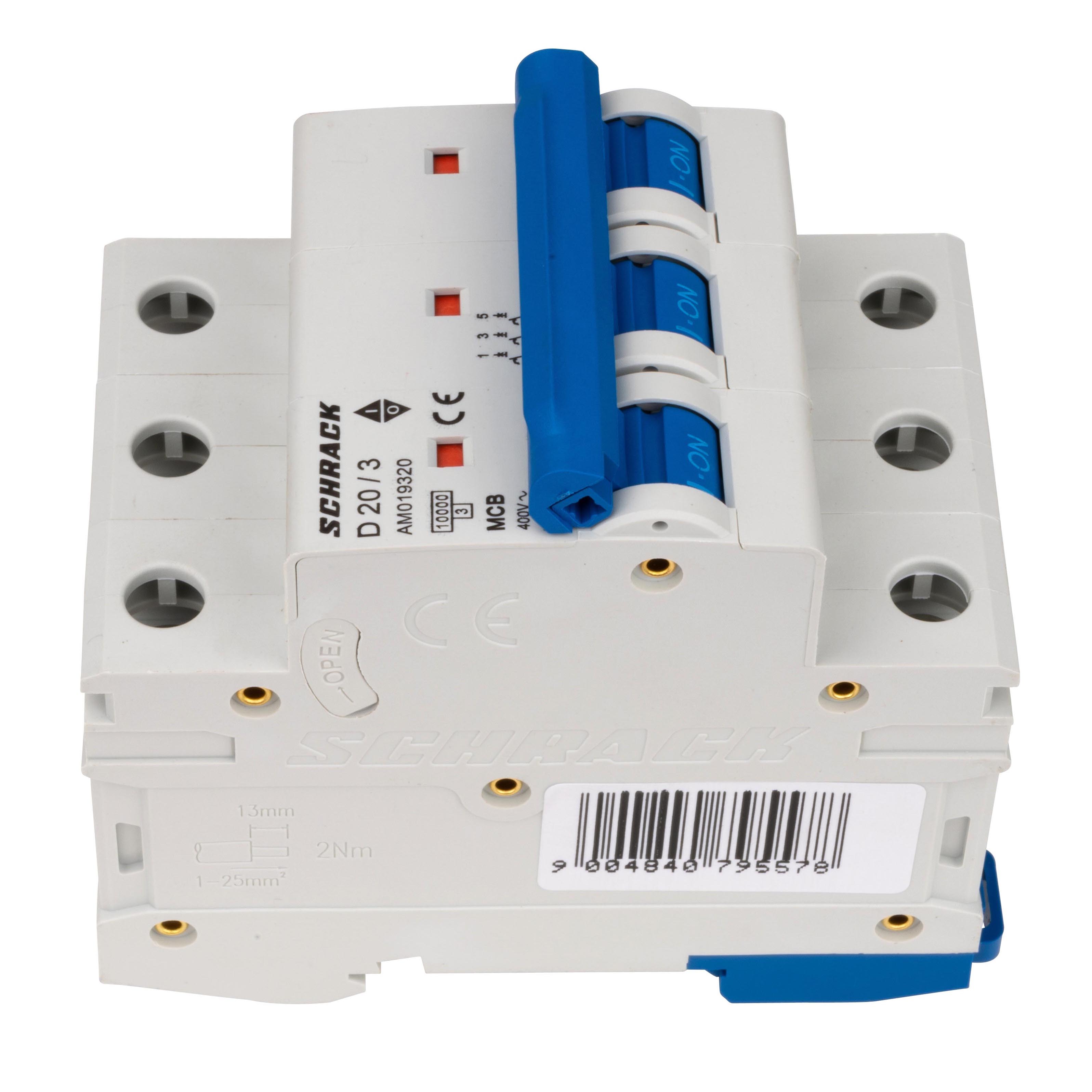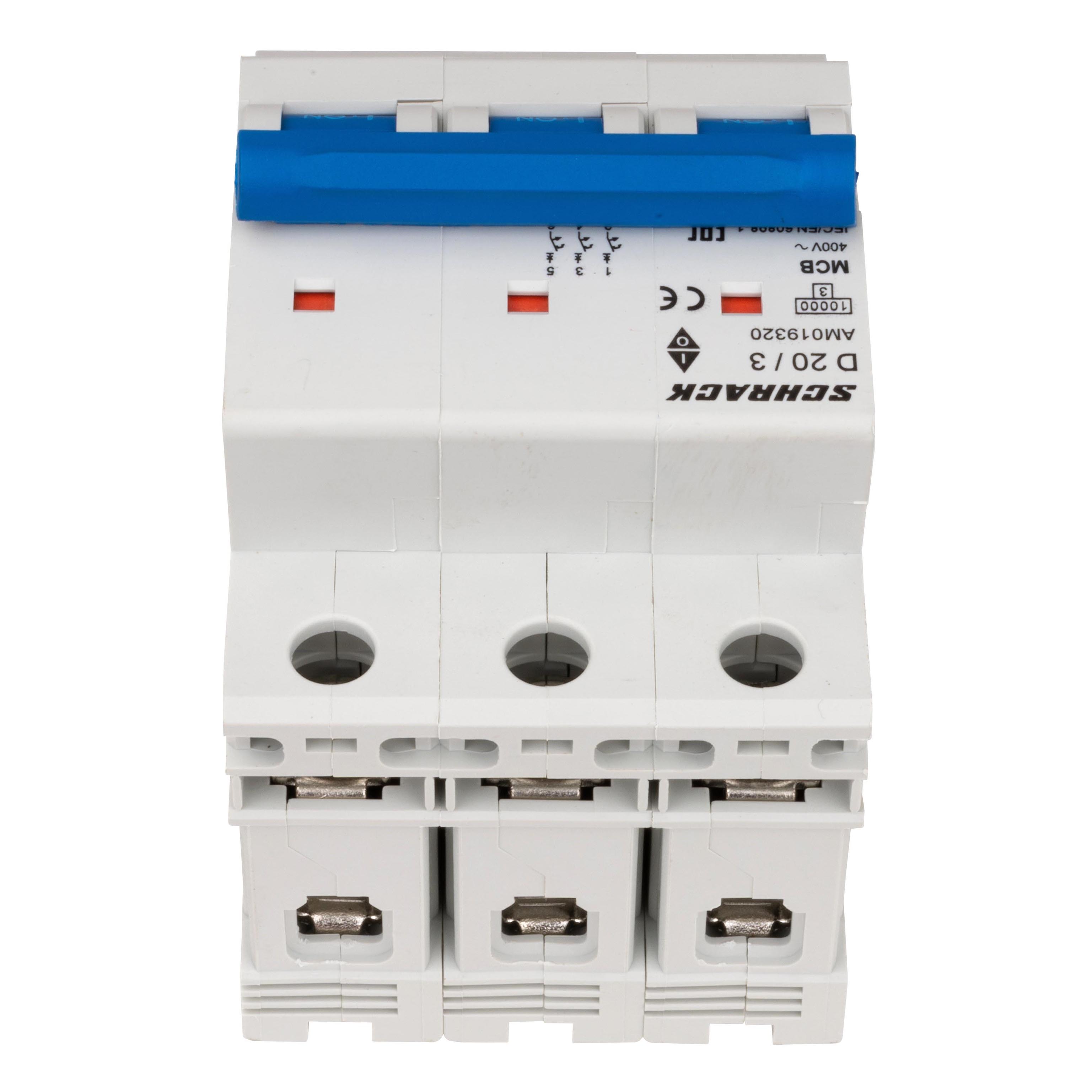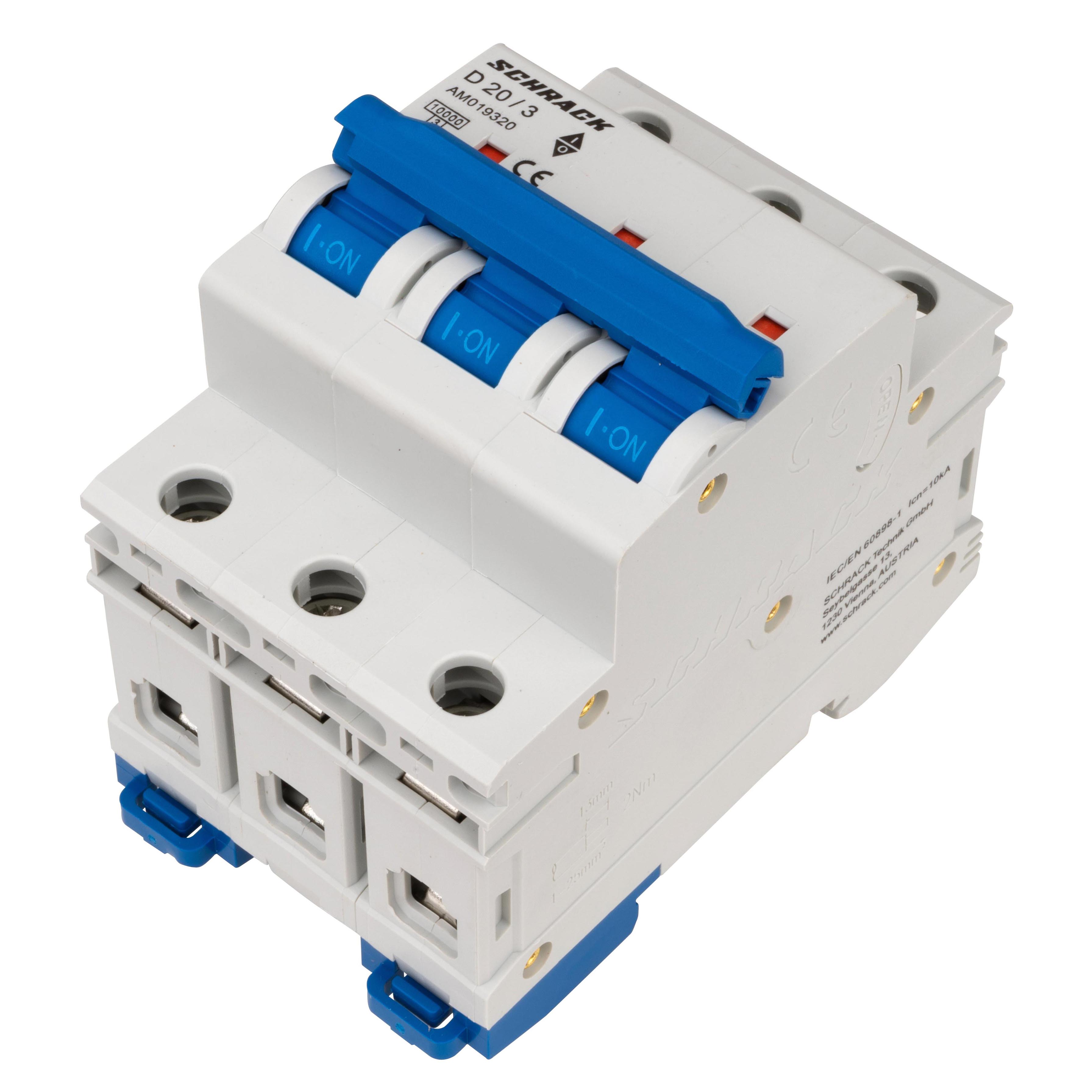 Автоматический выключатель трёхполюсный D20А/3, 10кА предназначен для защиты электрических цепей от перегрузок и коротких замыканий в сетях переменного тока.