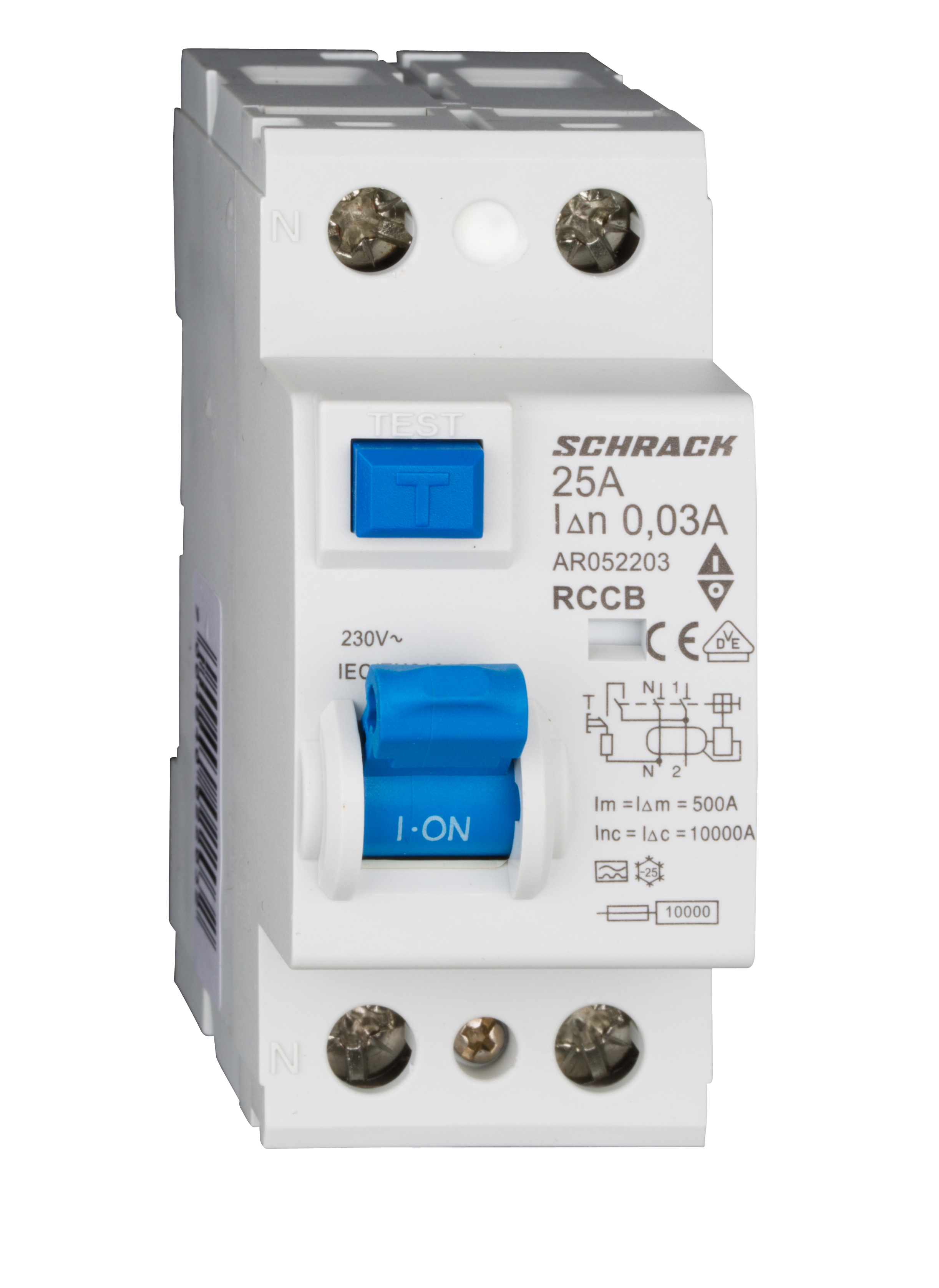 УЗО (устройство защиты от утечки тока) 25A/2, 10kA, 30mA, тип А предназначено для защиты электрических цепей от токов утечки и косвенного прикосновения. Устройство производства Schrack серии AMPARO.