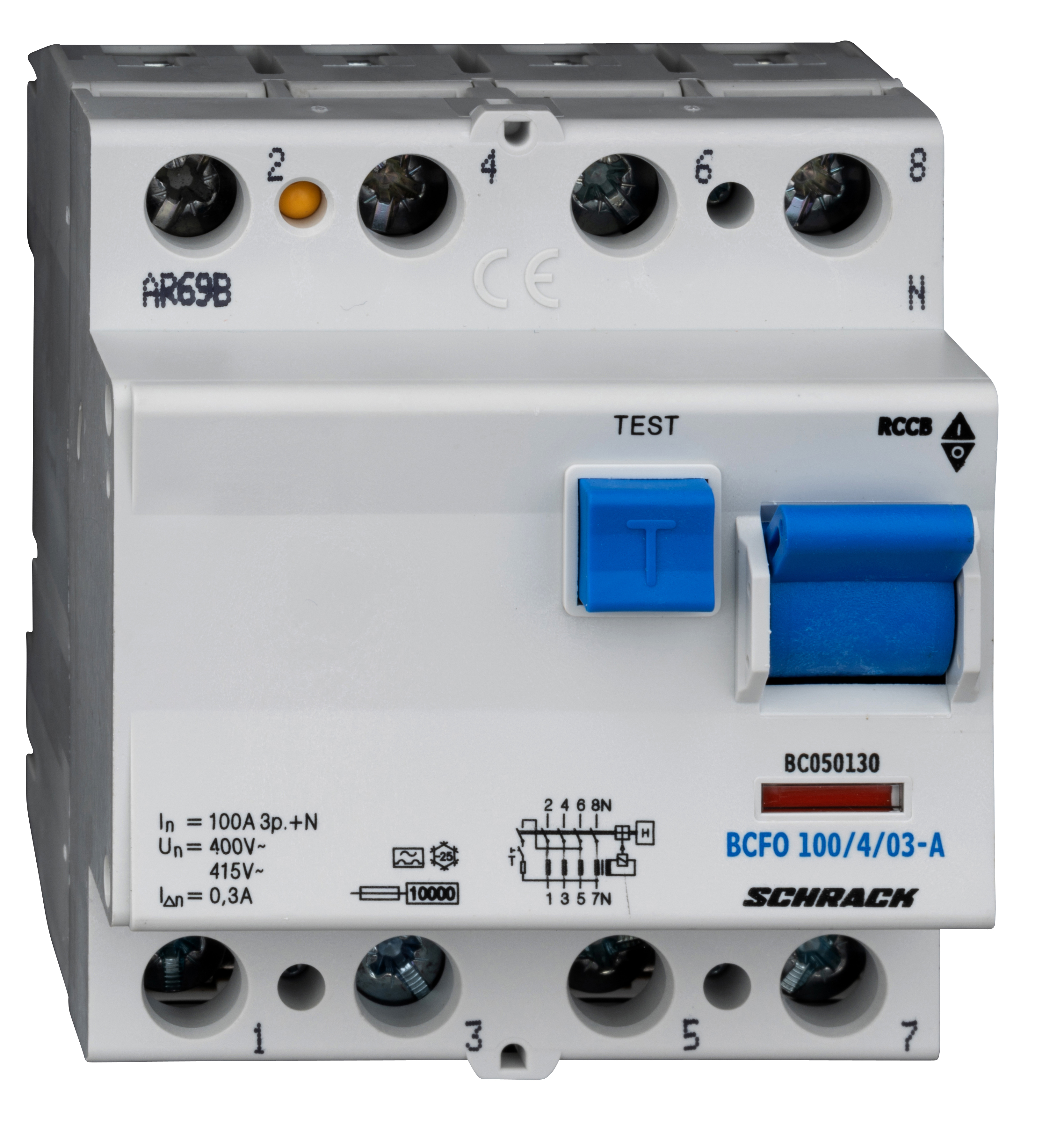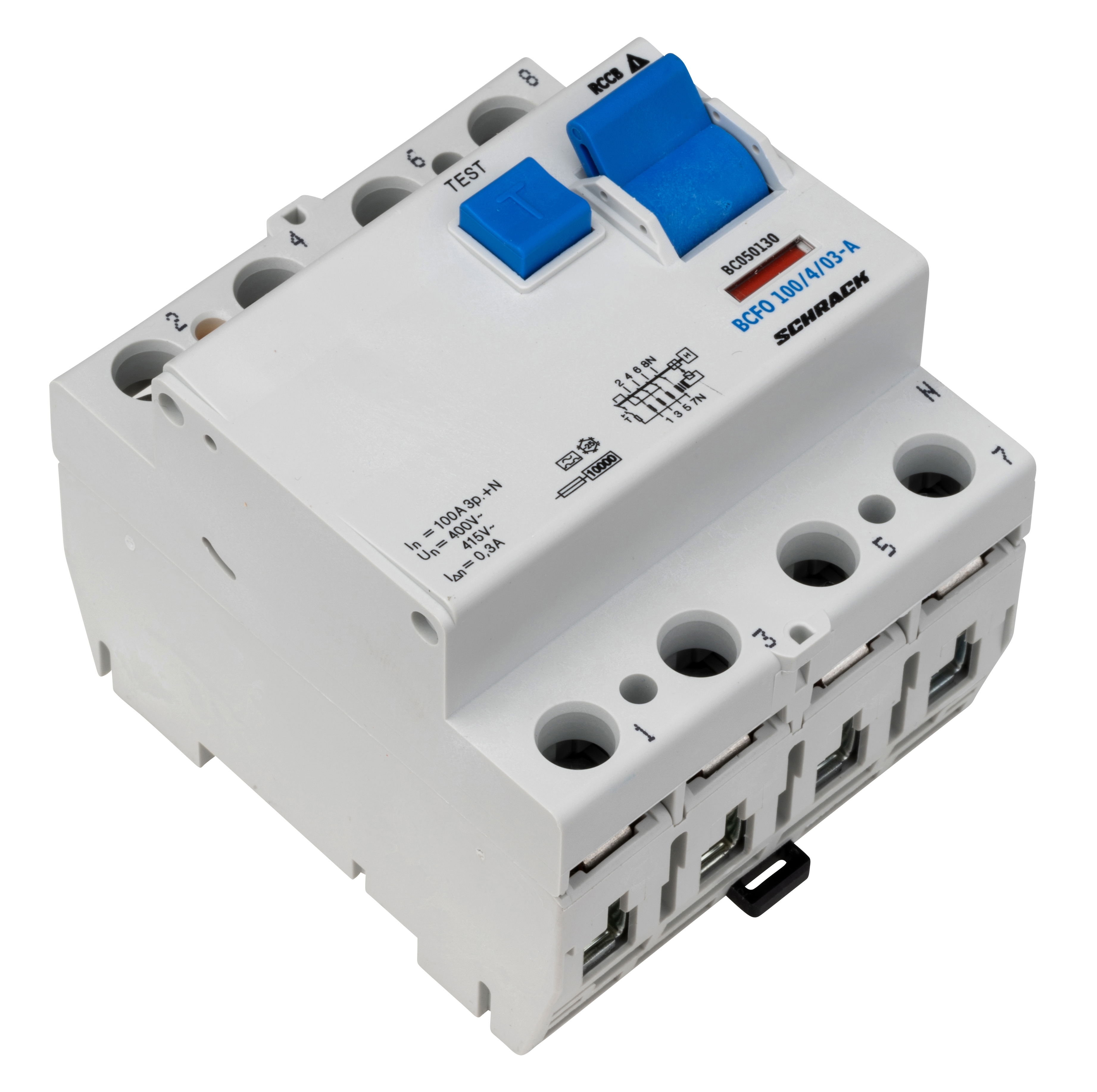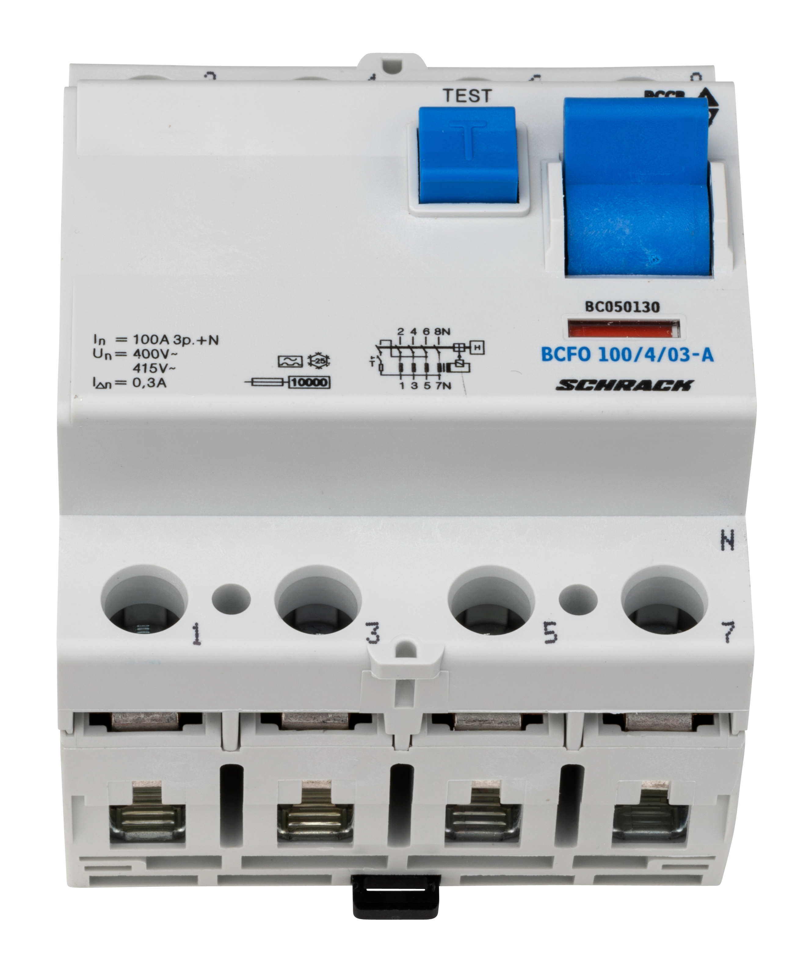 Четырехполюсное устройство защиты от токов утечки (УЗО) номинальным током 100 А с чувствительностью 300 мА, тип А. Предназначено для защиты электрических цепей от опасных токов утечки на землю в жилых, коммерческих и промышленных установках.