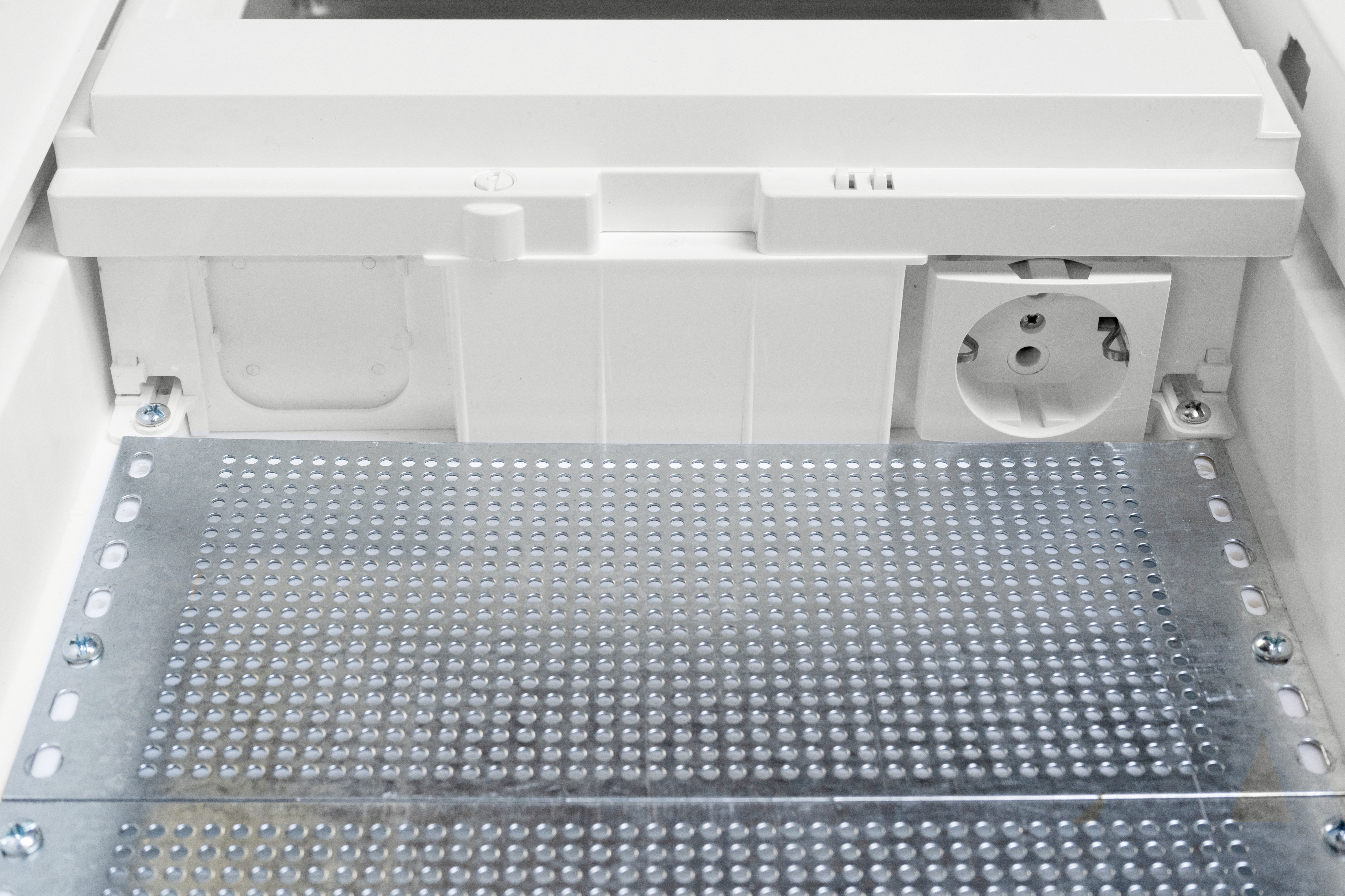 Комплект дверцы и рамы для распределительного щита 4-рядного исполнения с пропускной способностью 24+4 модуля и 2 монтажными панелями. Предназначен для встроенного (скрытого) монтажа в стену. Корпус изготовлен из листовой стали, окрашен в белый цвет RAL 9003. Обеспечивает надежную защиту электрооборудования при степени защиты IP30 и классе защиты II. Дверца оснащена герметичным закрытием. Конструкция рассчитана на работу в диапазоне температур от -25°C до +60°C. Материал без содержания галогенов (halogen-free), что соответствует экологическим и противопожарным требованиям. Минимальная потеря мощности при установке составляет 54 Вт. Компактные размеры (ширина 346 мм, высота 717 мм, глубина 36 мм) обеспечивают удобство монтажа в ограниченных пространствах. Вес конструкции 3,6 кг позволяет выполнять монтаж без использования специального оборудования.
