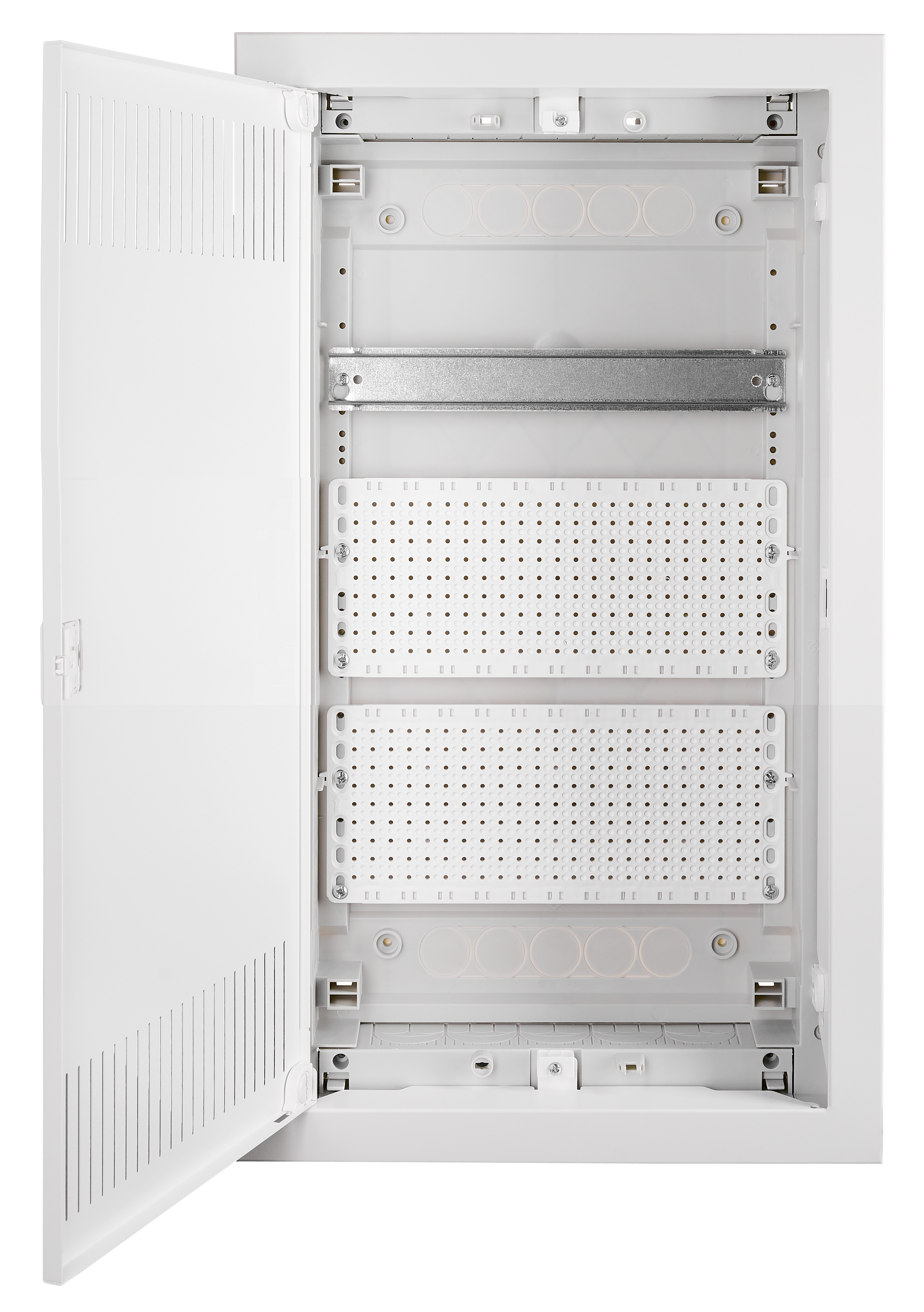 Встраиваемый щит для размещения IT-оборудования, модульной конструкции на 36 модулей (3 ряда по 12 TE). Корпус изготовлен с пластиковыми панелями и металлической дверью из листовой стали. Предназначен для скрытого монтажа в стену.