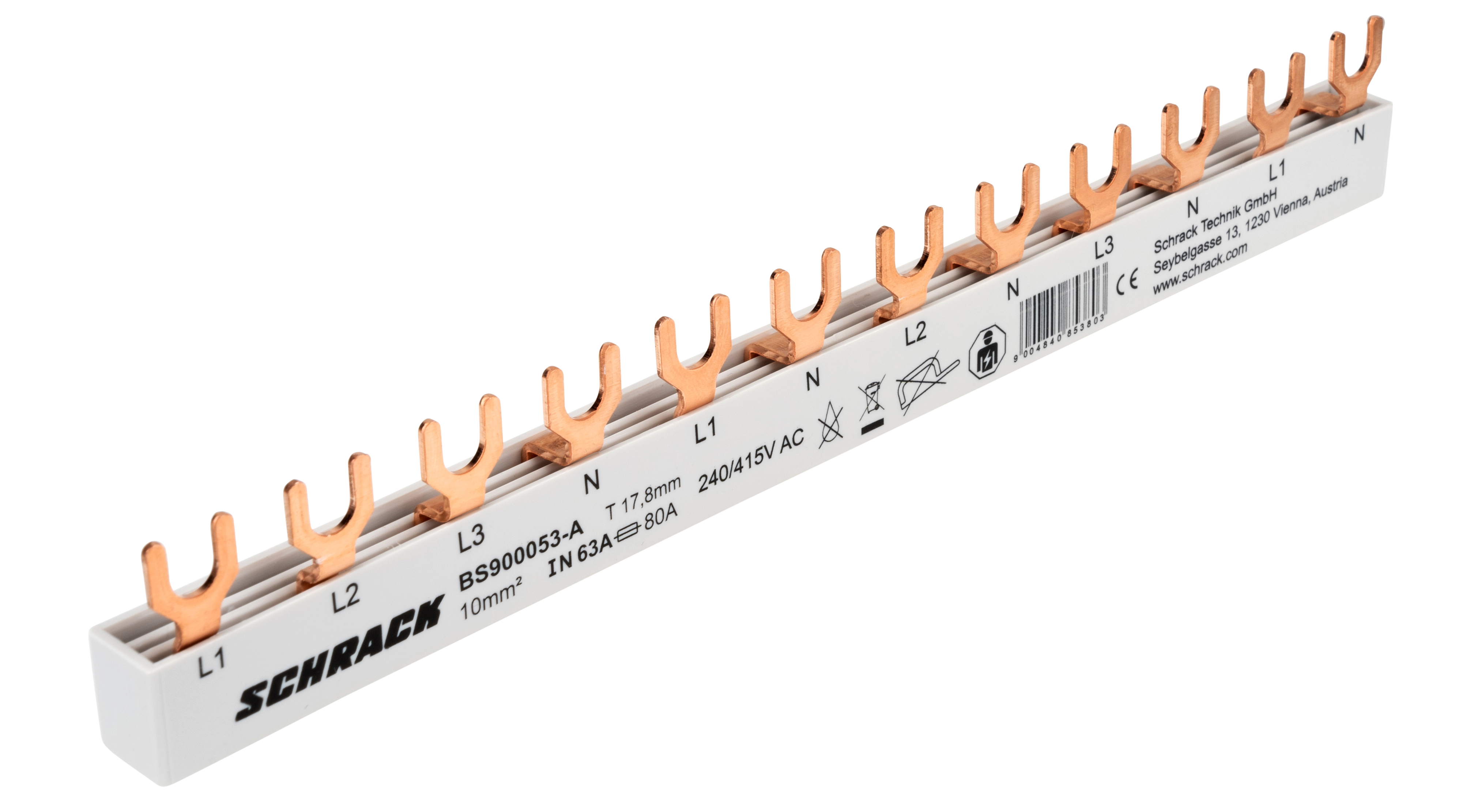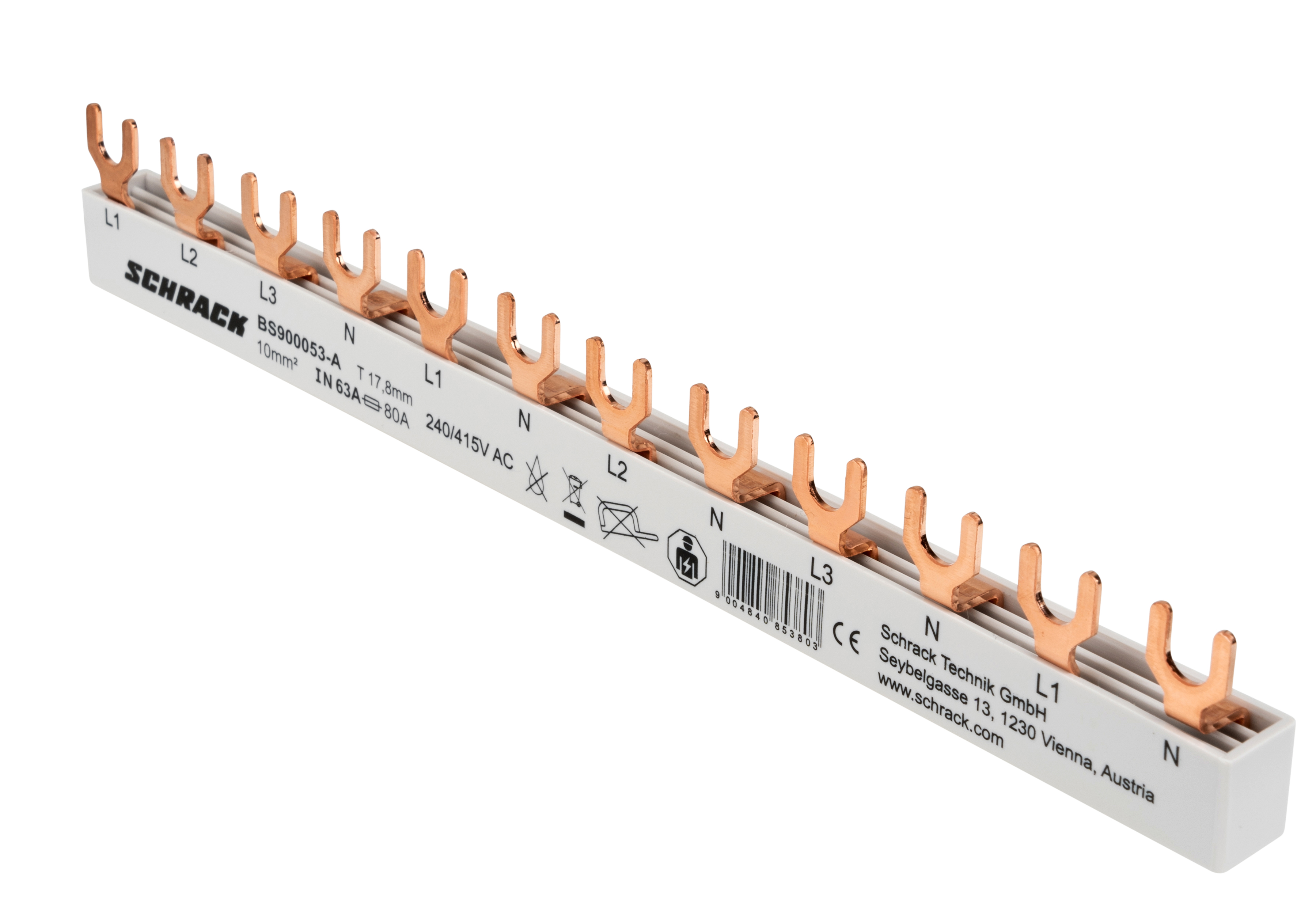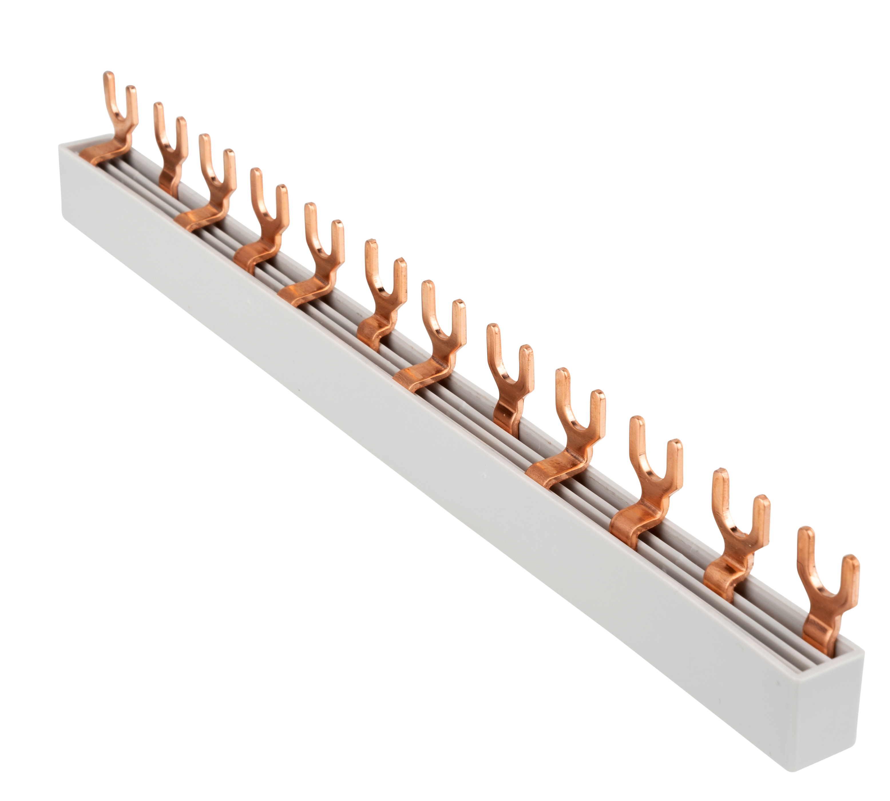 Шина вилочная трёхфазная с нулевым и защитным проводниками серии компактных сборных шин. Предназначена для распределения электроэнергии в электрических распределительных устройствах и щитках.