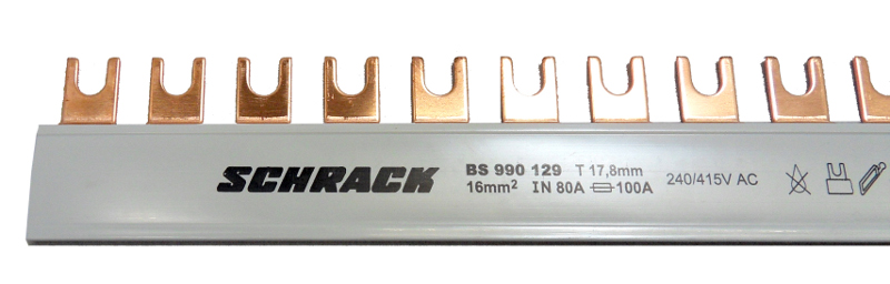 Шина вилочная однополюсная сечением 16 мм² для распределения электрической энергии в щитах и распределительных устройствах. Исполнение с вилочными контактами обеспечивает надежное соединение с типовыми ножевыми выводами. Длина 1 метр позволяет гибко компоновать распределительные схемы.