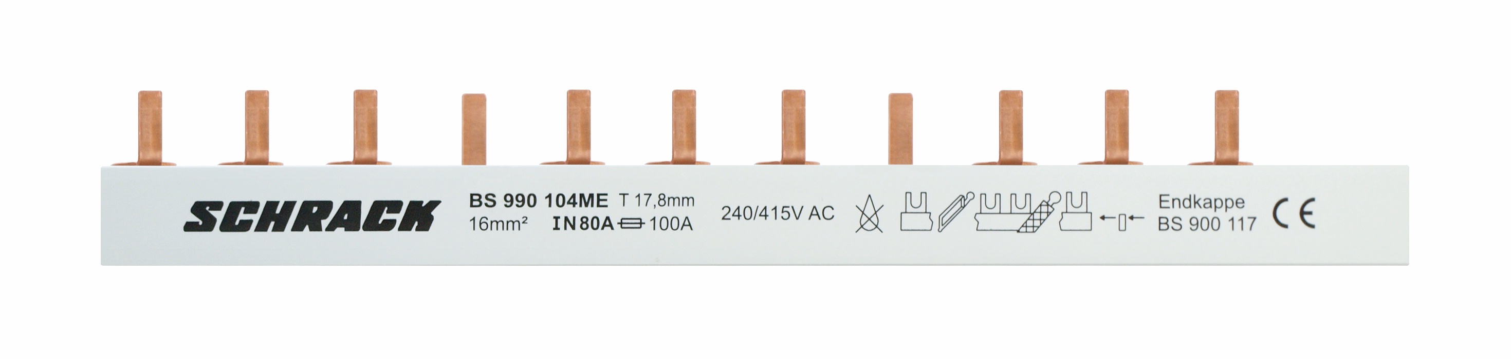 Штыревая шина Small Connect однополюсная, сечение 10 мм², длина 1 метр. Предназначена для распределения электрической нагрузки и коммутации в электрических шкафах и панелях.