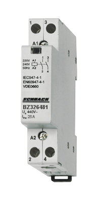 Модульный контактор предназначен для коммутации цепей управления и силовых цепей в электроустановках. Контактор имеет 2 размыкающих главных контакта (2NC) и рассчитан на номинальный ток 25A.