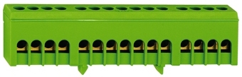 Клемма заземления с 15 отверстиями для подключения заземляющих проводников. Изолированная конструкция обеспечивает безопасность при монтаже и эксплуатации. Предназначена для распределения заземления в электрических щитах и распределительных устройствах.