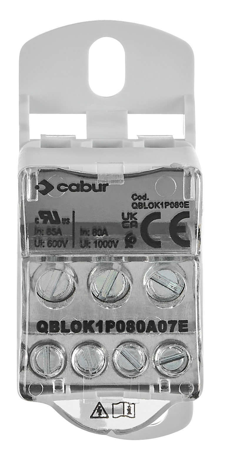 Однополюсный клеммный блок распределитель электропитания серии Schrack, рассчитанный на ток 80 А. Предназначен для распределения напряжения с одного входа на несколько выходов.
