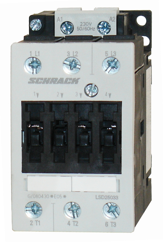 Контактор предназначен для коммутации трёхфазных асинхронных электродвигателей и других нагрузок переменного тока. Устройство обеспечивает надёжное управление силовыми цепями напряжением 400V с номинальным током 50A.