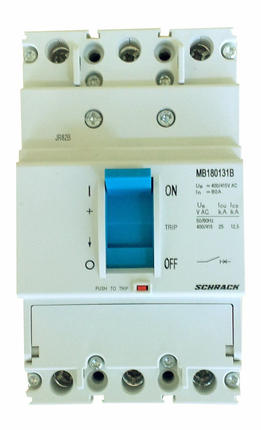 Силовой автоматический выключатель трёхполюсный с номинальным током 80 А и коммутационной способностью при коротком замыкании 18 кА. Оснащен термо-магнитным расцепителем для защиты электрооборудования и кабельных линий от перегрузок и токов короткого замыкания.