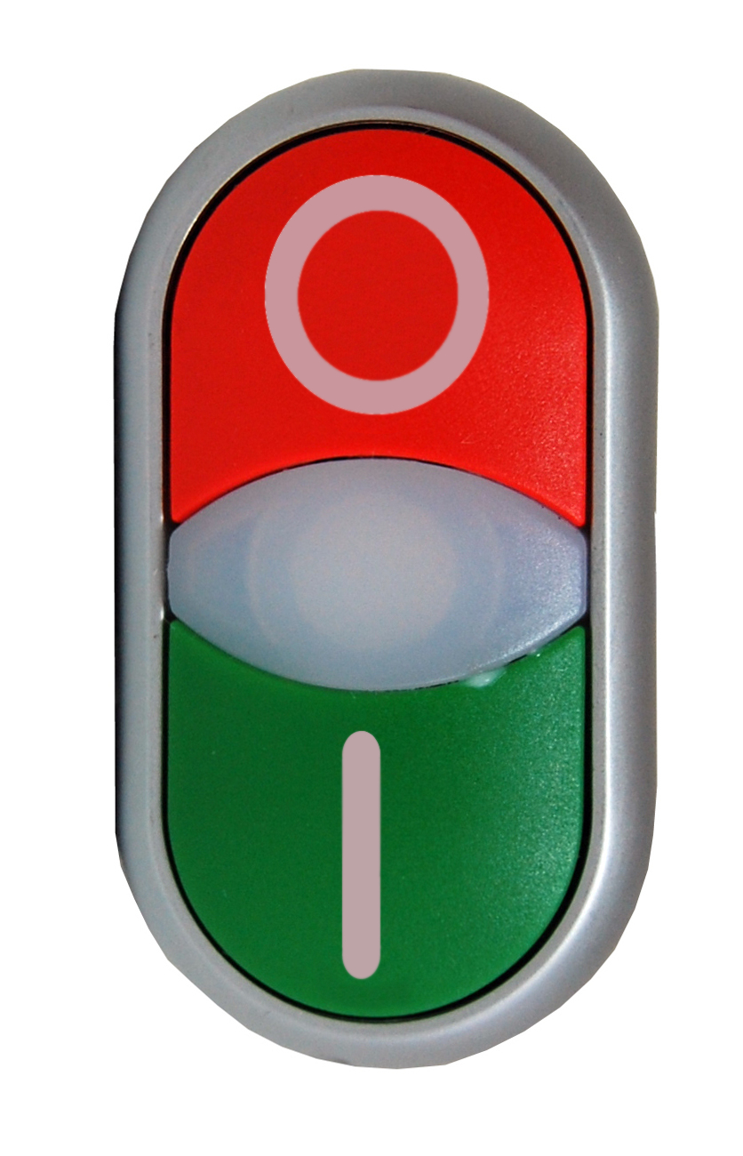 Двойная кнопка с сигнальной лампой, зел./красн., "I/0"