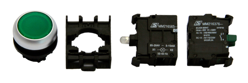 Кнопка с подсветкой 230В, 1НО, зеленая, пруж.возвр., MM900001--