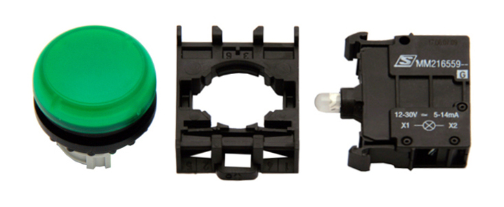 Комплектный световой индикатор, плоский, зеленый, 24В